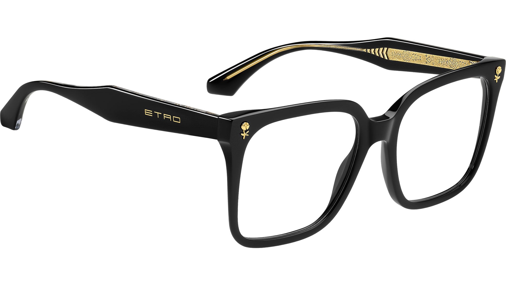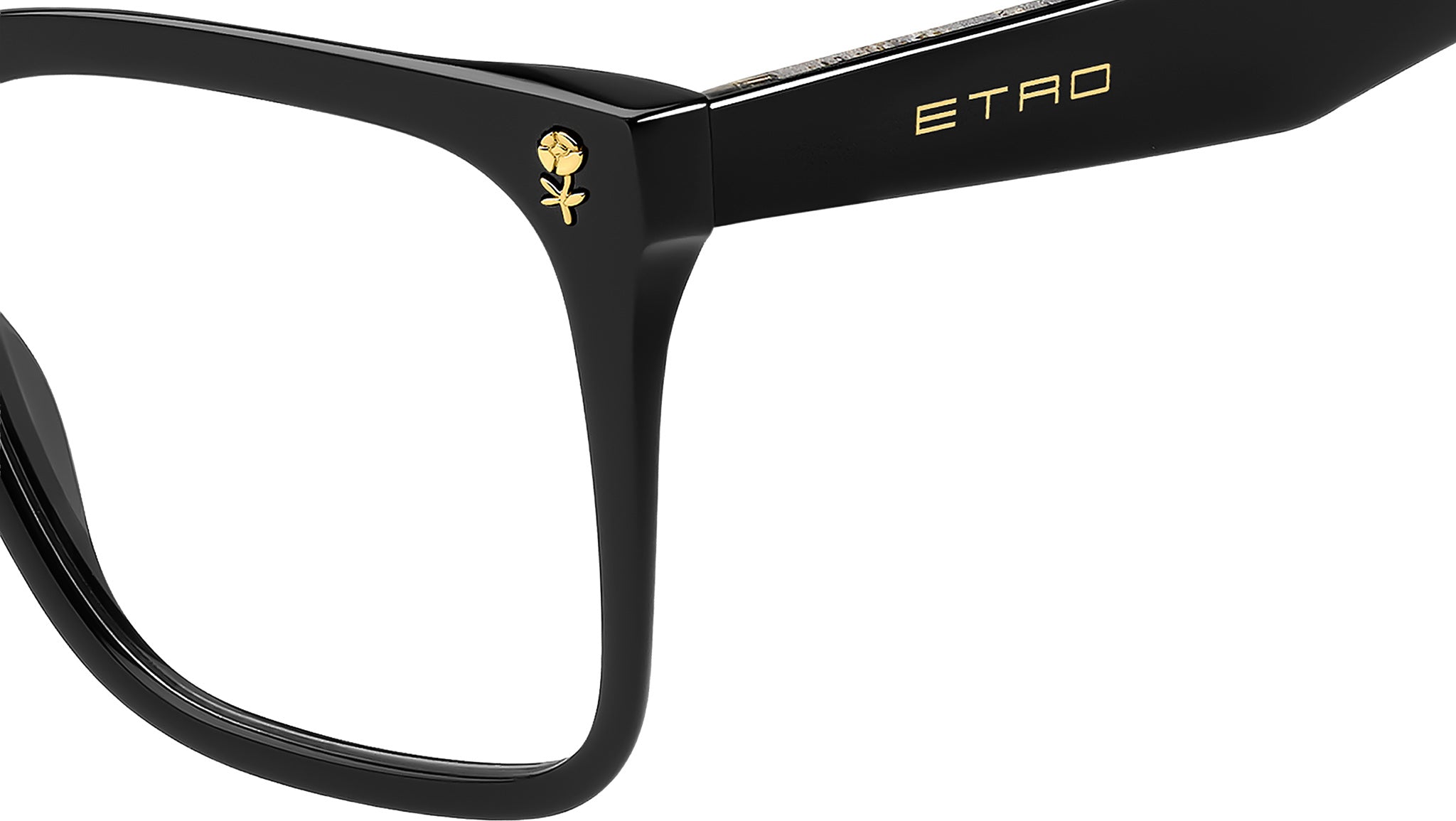 Occhiali da vista Etro 0093 807 donna con montatura squadrata in acetato nero e lenti demo. La collezione eyewear 'Colour Stripes' di ETRO esprime l'anima del brand con occhiali da vista che non passano inosservati. Il frontale in acetato, lavorato con linee moderne e proporzioni equilibrate, è abbinato ad aste geometriche impreziosite da un filo metallico sottile. Dettagli floreali, ispirati all'arte del ricamo, e il logo dorato di ETRO aggiungono un tocco sofisticato. Disponibili in un'ampia gamma di colori, le tonalità piene e il design accattivante delle aste esaltano l’unicità del modello. Linea: Etromania. Codice modello: 109297. Codice colore: 807. Rivenditore autorizzato Etro online. Gli occhiali vengono consegnati con custodia e accessori originali e sono coperti dalla garanzia ufficiale di 12 mesi del produttore.