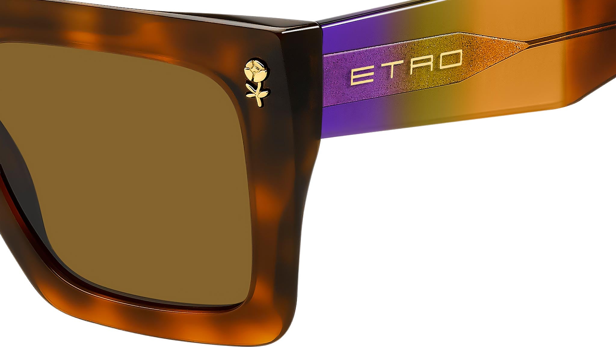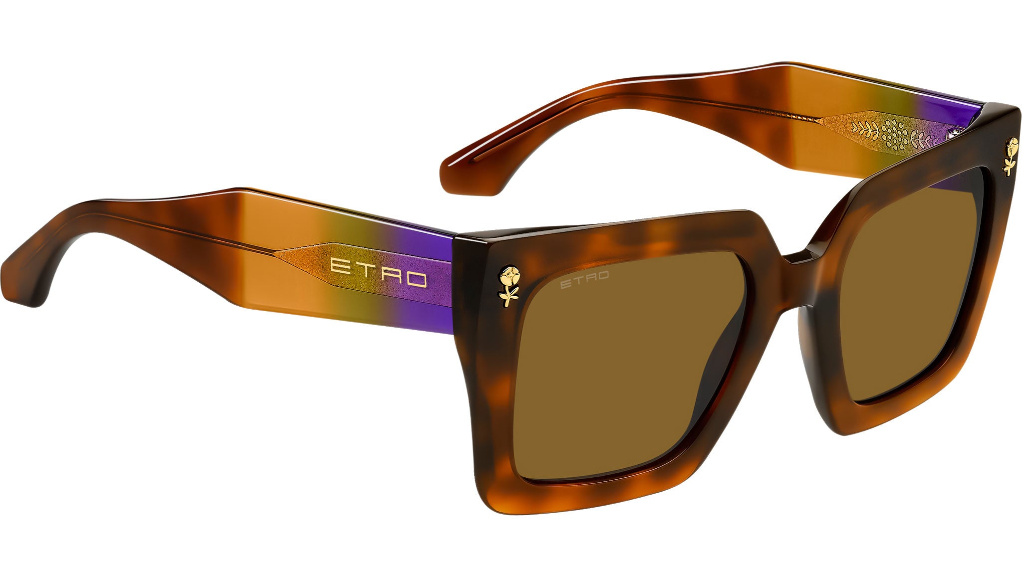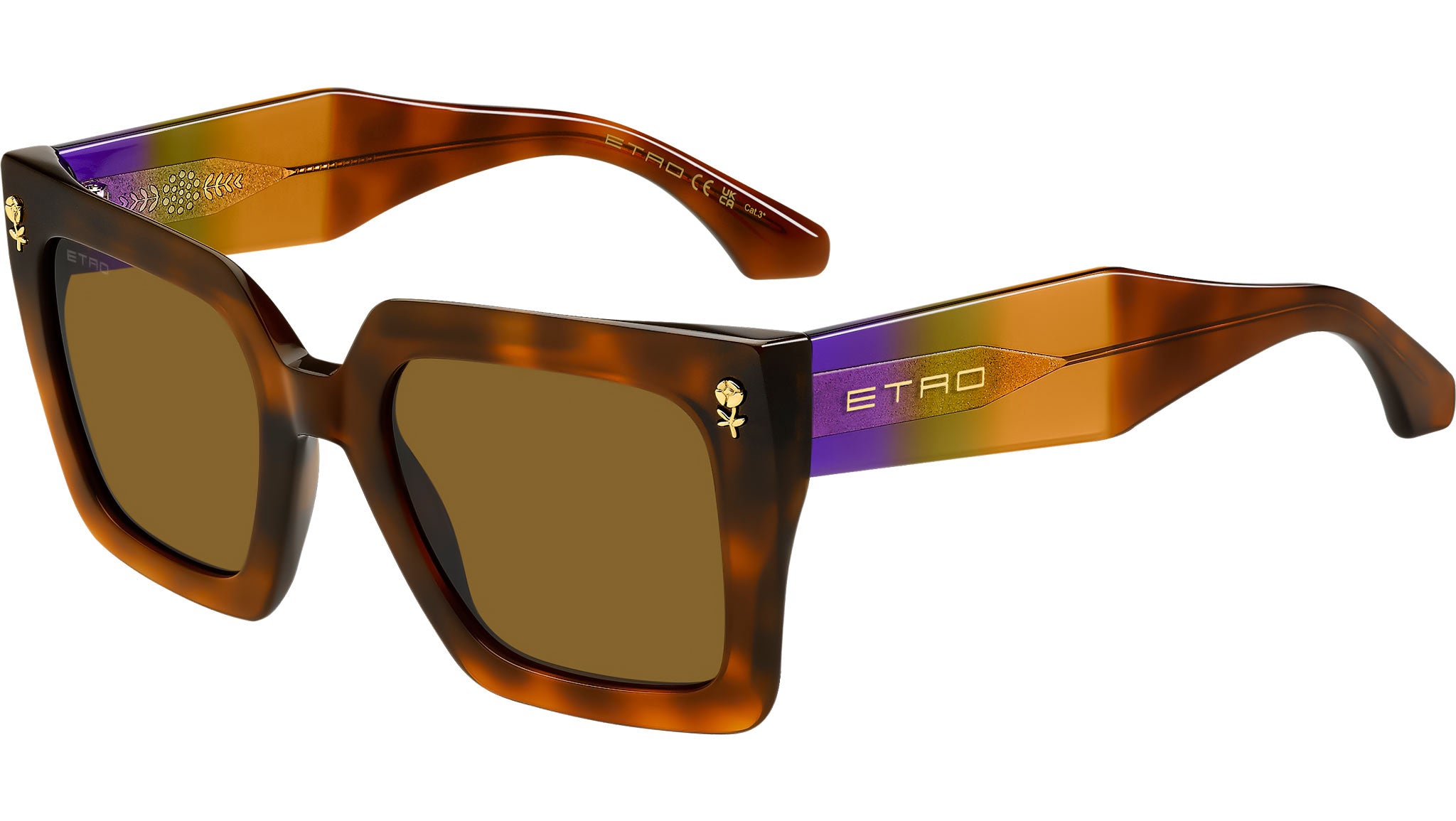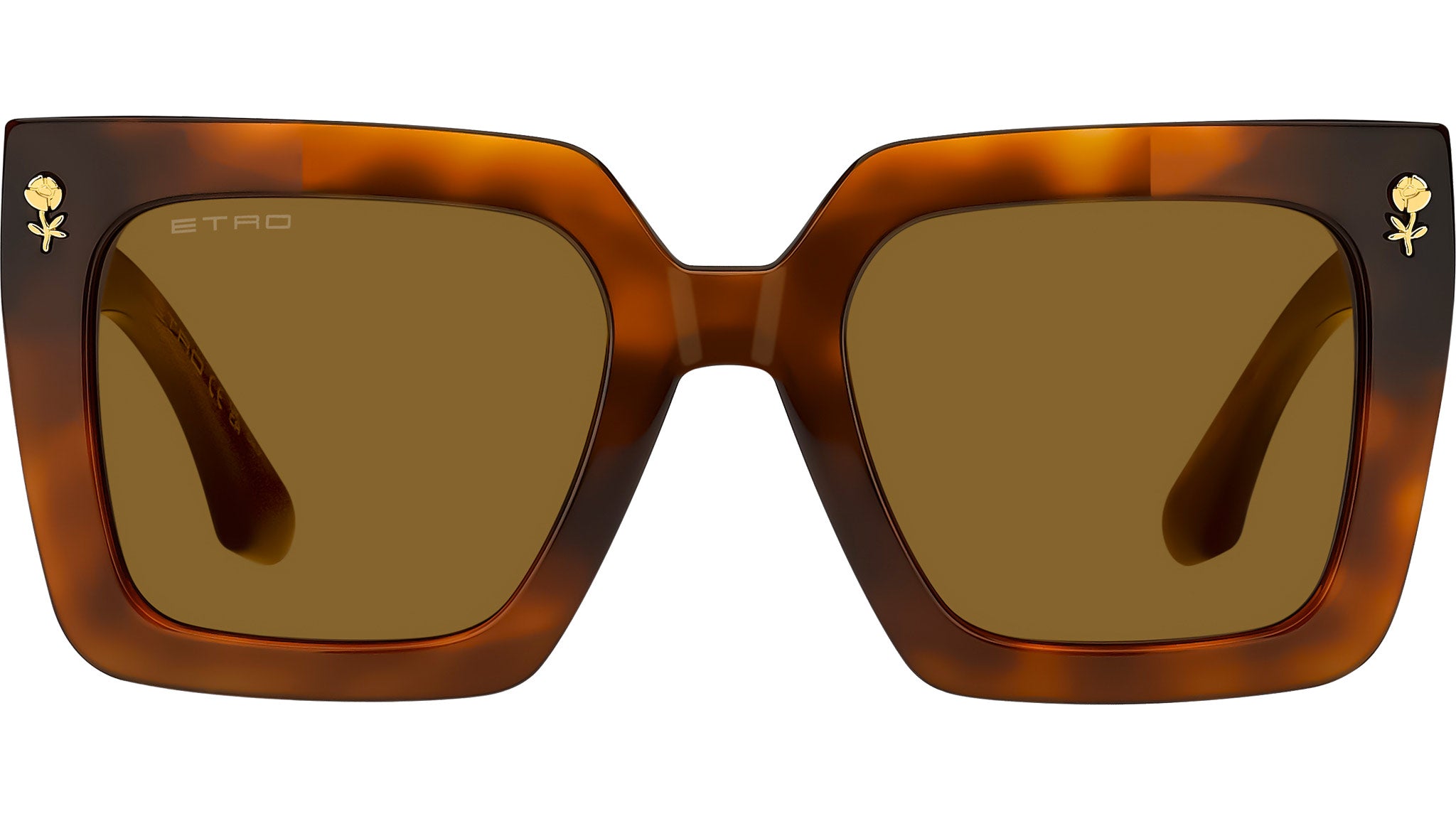 Occhiali da sole Etro 0089/S C9B 70 donna con montatura squadrata in acetato avana miele e lenti in CR-39 marrone. Un passo avanti nella storia delle 'Colour Stripes' di ETRO, questi occhiali da sole sono pensati per farsi notare. Il frontale in acetato, smussato per garantire leggerezza, si unisce ad aste geometriche in una palette ombré trasparente, che mette in evidenza il filo metallico grafico. I dettagli floreali, ispirati alle tecniche di ricamo più intricate, il celebre logo ETRO e i terminali iconici completano ogni modello. La palette di colori unisce tonalità classiche e trasparenze intriganti, per un effetto visivo sorprendente. Linea: Etromania. Codice modello: 207783. Codice colore: C9B 70. Rivenditore autorizzato Etro online. Gli occhiali vengono consegnati con custodia e accessori originali e sono coperti dalla garanzia ufficiale di 12 mesi del produttore.