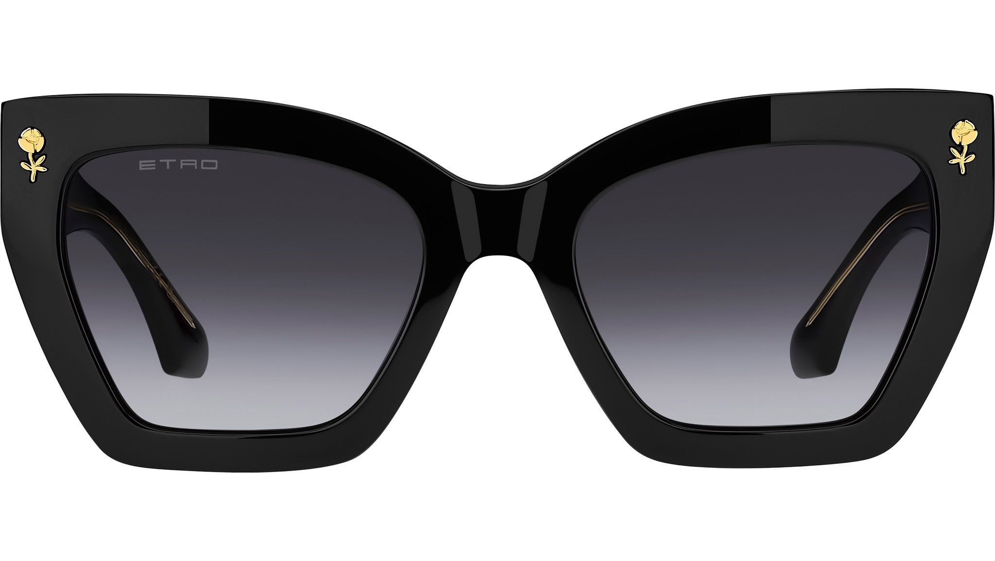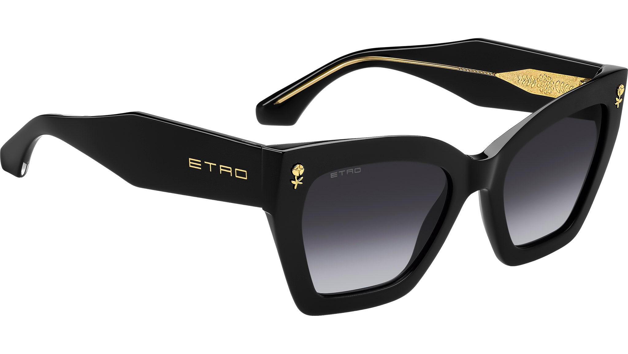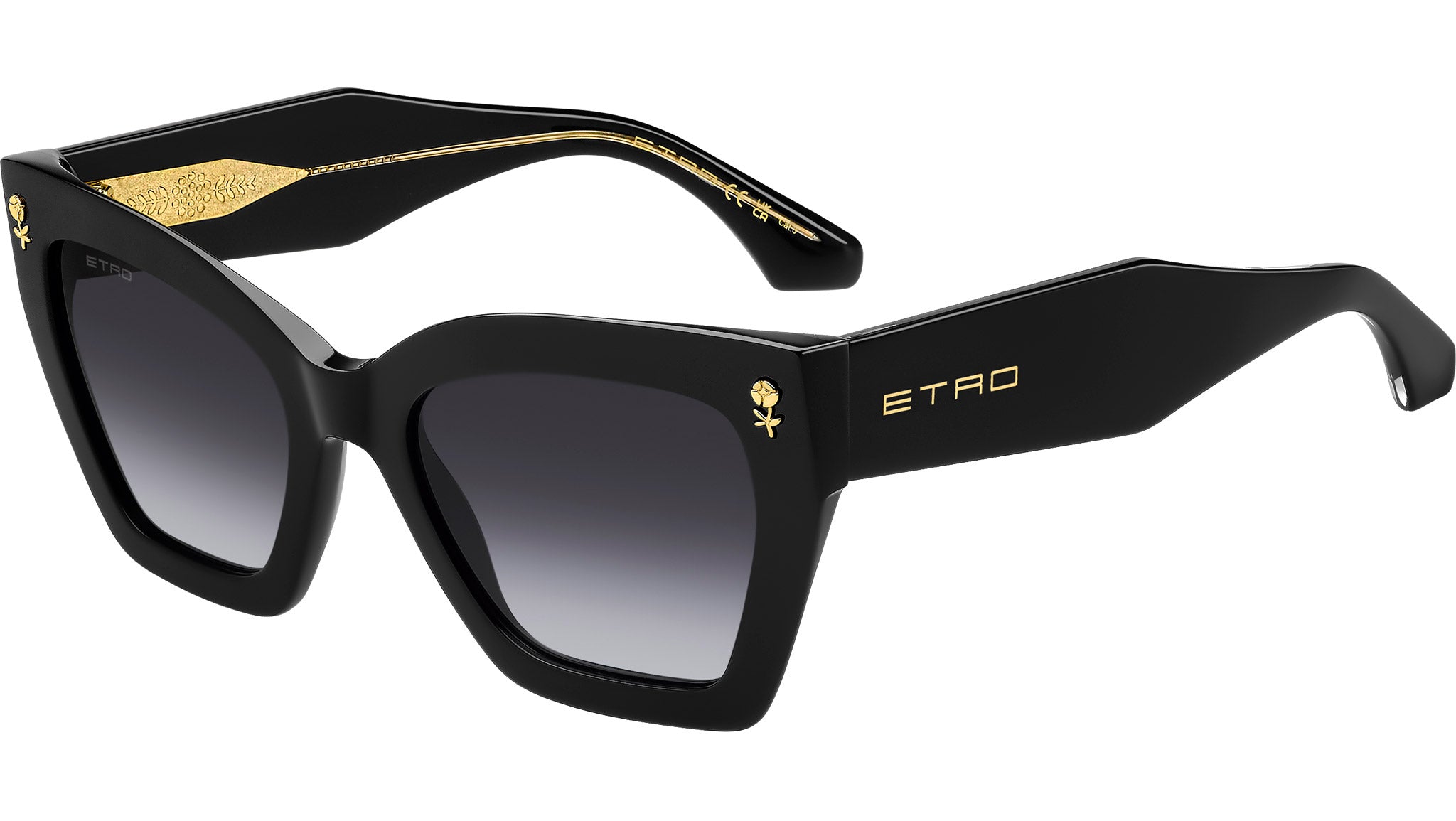 Occhiali da sole Etro 0090/S 807 9O donna con montatura rettangolare in acetato nero e lenti in CR-39 grigio scuro sfumato. Linea: Etromania. Codice modello: 207784. Codice colore: 807 9O. Rivenditore autorizzato Etro online. Gli occhiali vengono consegnati con custodia e accessori originali e sono coperti dalla garanzia ufficiale di 12 mesi del produttore.