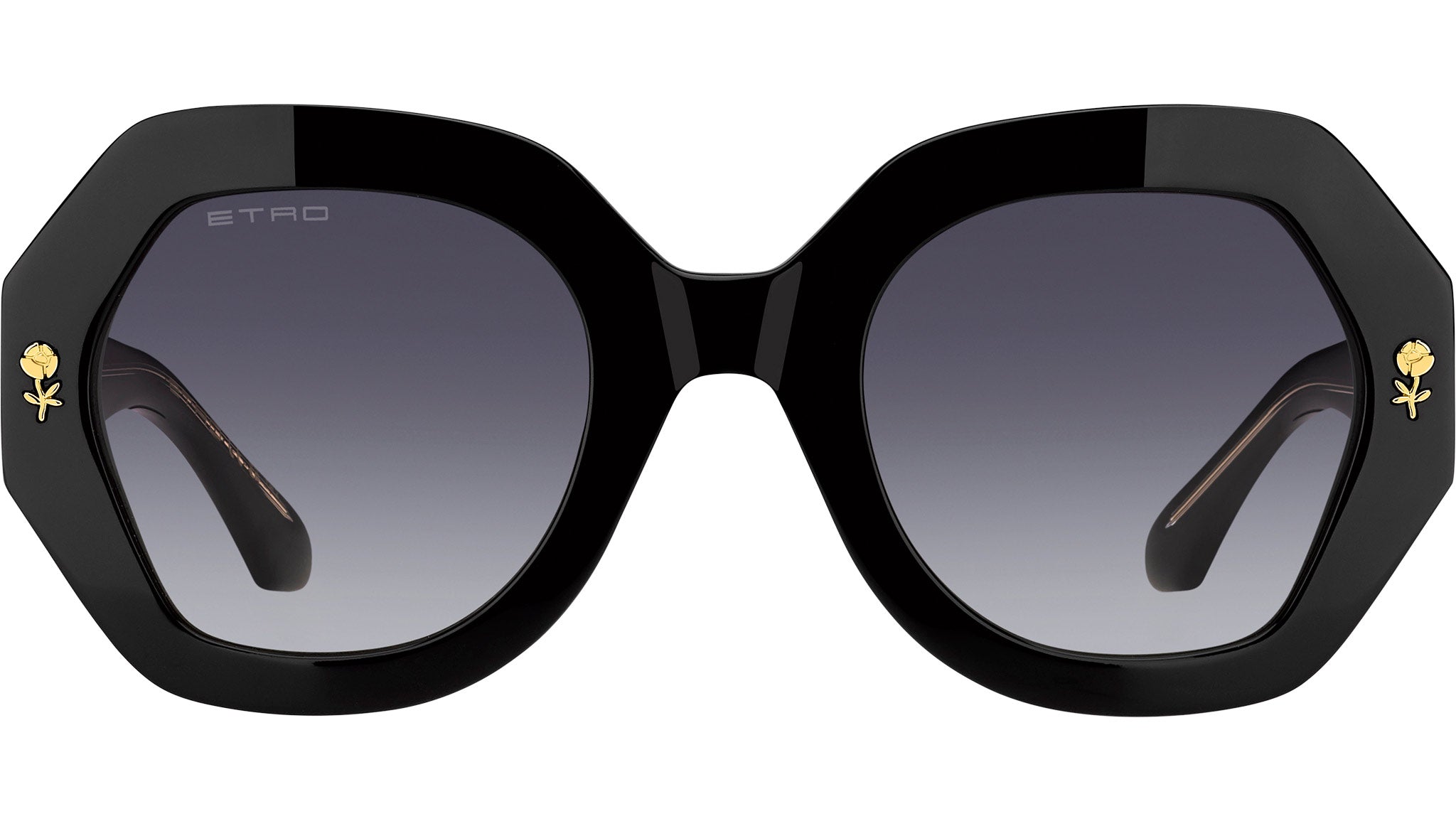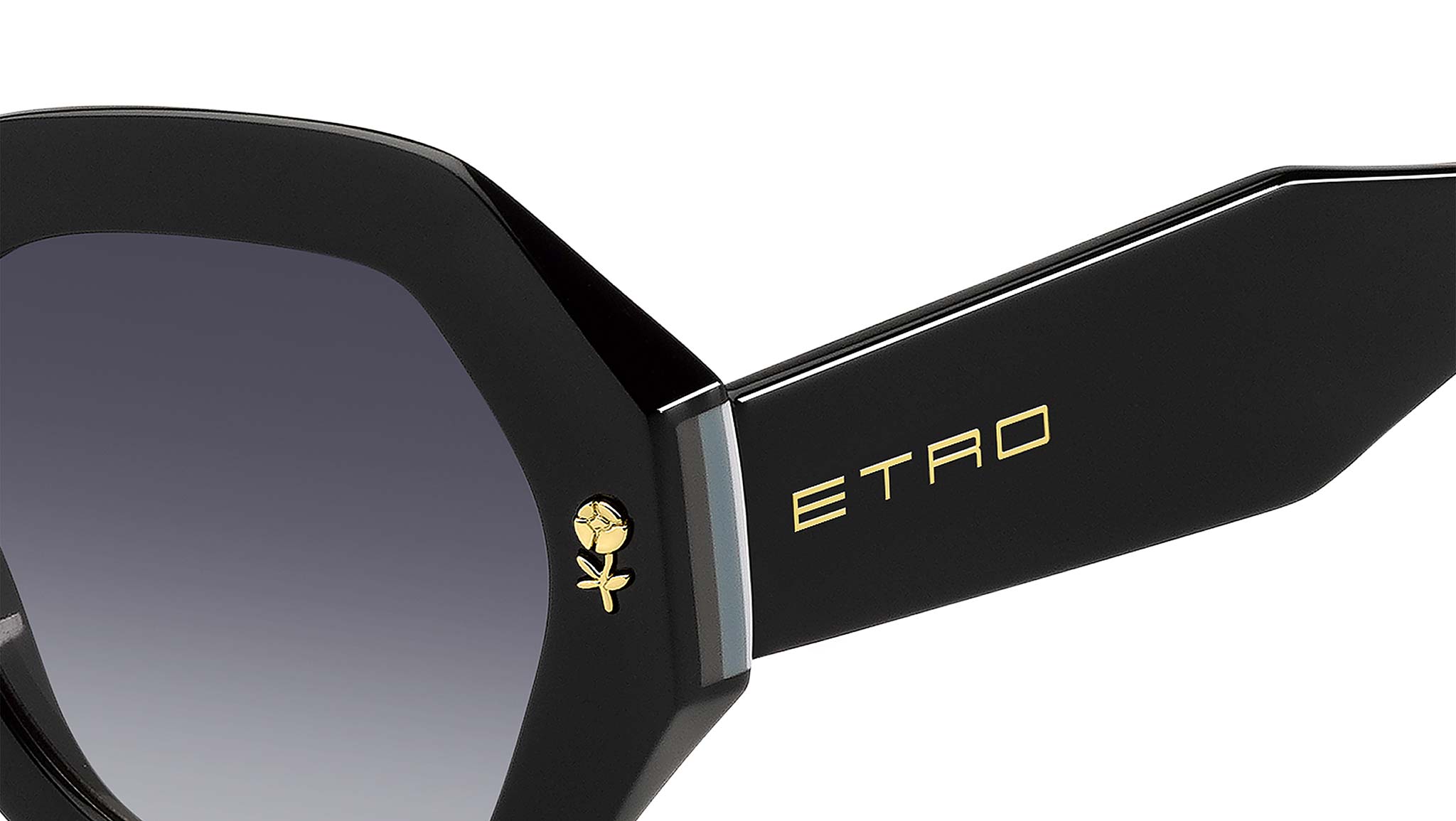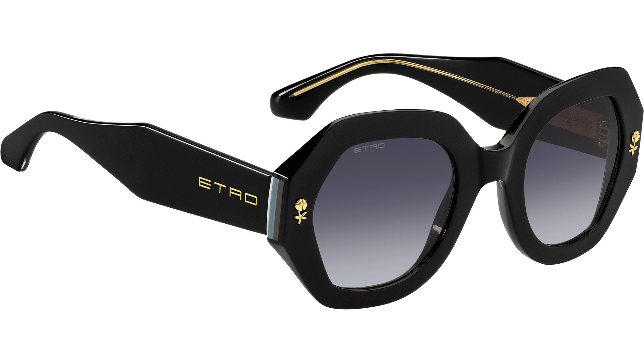 Occhiali da sole ETRO modello 0009/S codice colore 807 9O in acetato nero con lenti in CR-39 grigio scuro sfumato. Un omaggio ai motivi floreali e pattern grafici che definiscono l'estetica di ETRO, la collezione eyewear "Colour Stripes" traduce i ricami e le stampe della Maison in occhiali da sole eclettici e ricercati. La montatura in acetato dagli angoli smussati è impreziosita da un'applicazione in metallo a forma di fiore e un inserto a righe multicolore sui lati. Le aste sono realizzate in acetato trasparente con un'anima interna in metallo. Il design innovativo è completato dagli iconici terminali in acetato, ispirati alla simmetria del logo ETRO. Rivenditore autorizzato online Dsquared2.