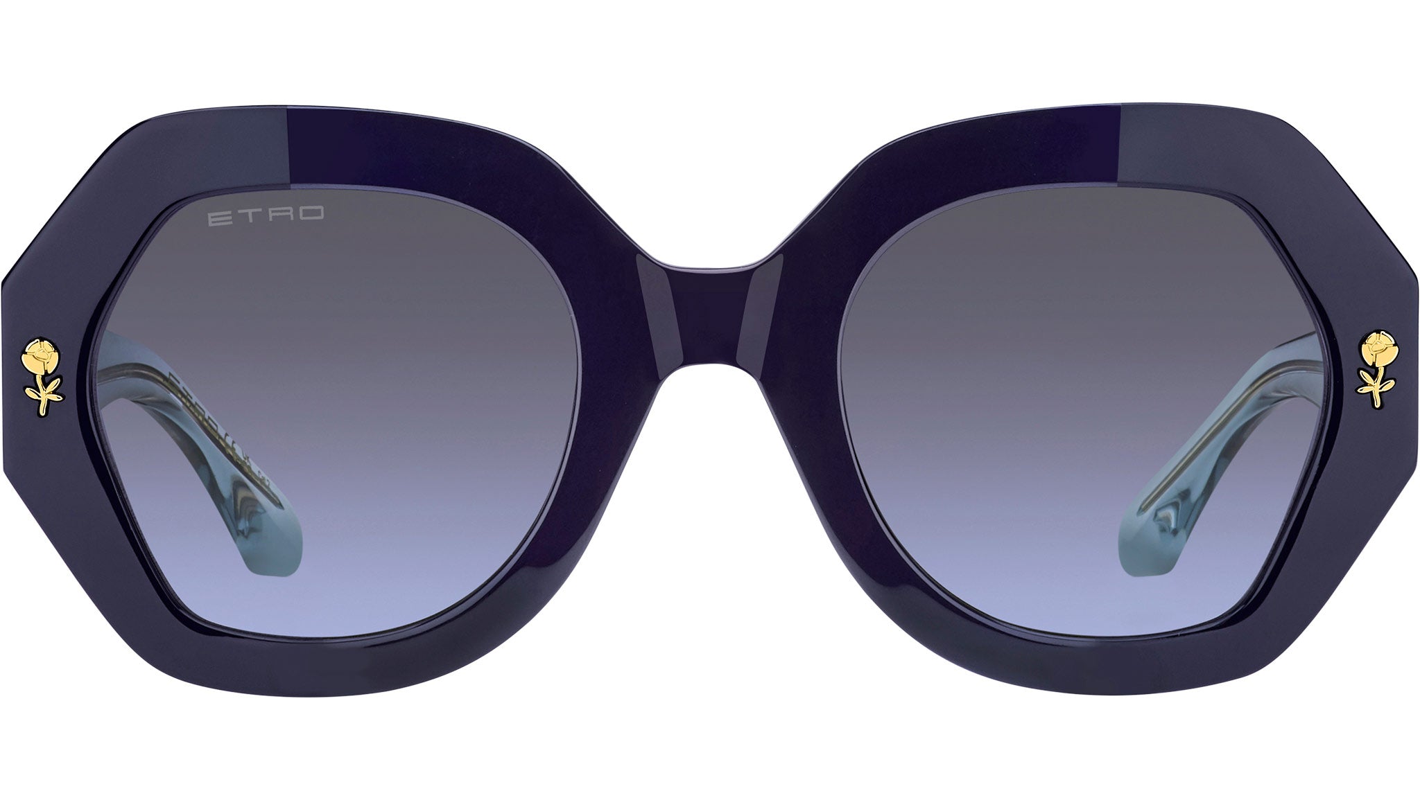 Occhiali da sole ETRO modello 0009/S codice colore PJP GB in acetato blu con lenti in CR-39 grigio azzurro. Un omaggio ai motivi floreali e pattern grafici che definiscono l'estetica di ETRO, la collezione eyewear "Graphic Elegance" traduce i ricami e le stampe della Maison in occhiali da sole eclettici e ricercati. La montatura in acetato dagli angoli smussati è impreziosita da un'applicazione in metallo a forma di fiore e un inserto a righe multicolore sui lati. Le aste sono realizzate in acetato trasparente con un'anima interna in metallo. Il design innovativo è completato dagli iconici terminali in acetato, ispirati alla simmetria del logo ETRO. Rivenditore autorizzato online Dsquared2.