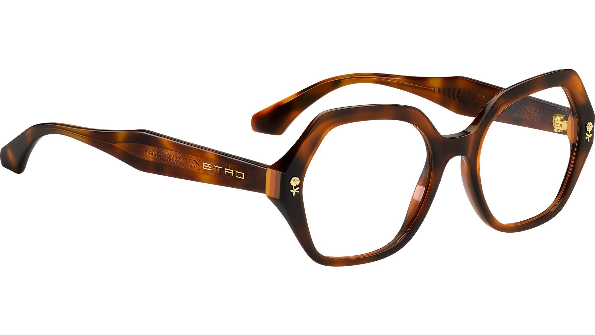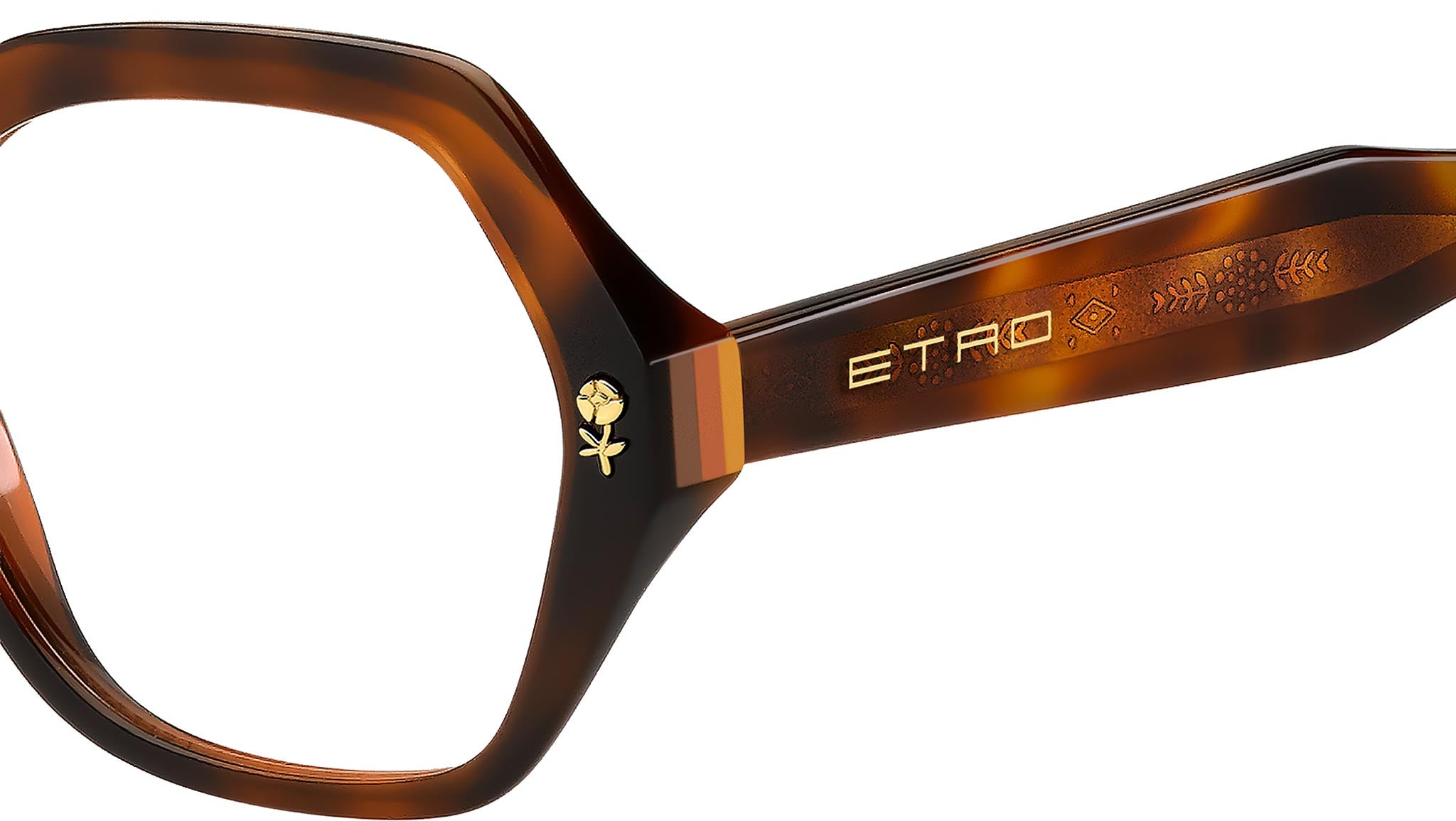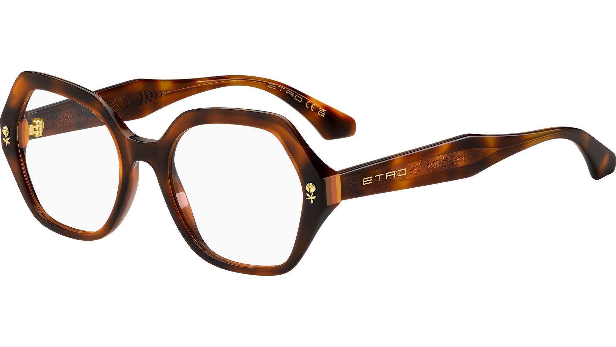 Occhiali da vista Etro 0012 05L donna con montatura butterfly in acetato avana e lenti demo. Un omaggio ai motivi a righe e pattern floreali che contraddistinguono il codici stilistici di ETRO, la collezione eyewear "Colour Stripes" traduce i ricami e le stampe iconiche della Maison in occhiali da vista dall'estetica eclettica e innovativa. La montatura in acetato dai volumi audaci, rifinita con profili smussati, è arricchita da una preziosa decorazione in metallo a forma di fiore e da un inserto a righe multicolore sui lati. L’anima in metallo visibile attraverso le aste trasparenti aggiunge un tocco grafico. Il design dei terminali in acetato richiama la simmetria del logo ETRO. Linea: Etromania. Codice modello: 108229. Codice colore: 05L. Rivenditore autorizzato Etro online. Gli occhiali vengono consegnati con custodia e accessori originali e sono coperti dalla garanzia ufficiale di 12 mesi del produttore.