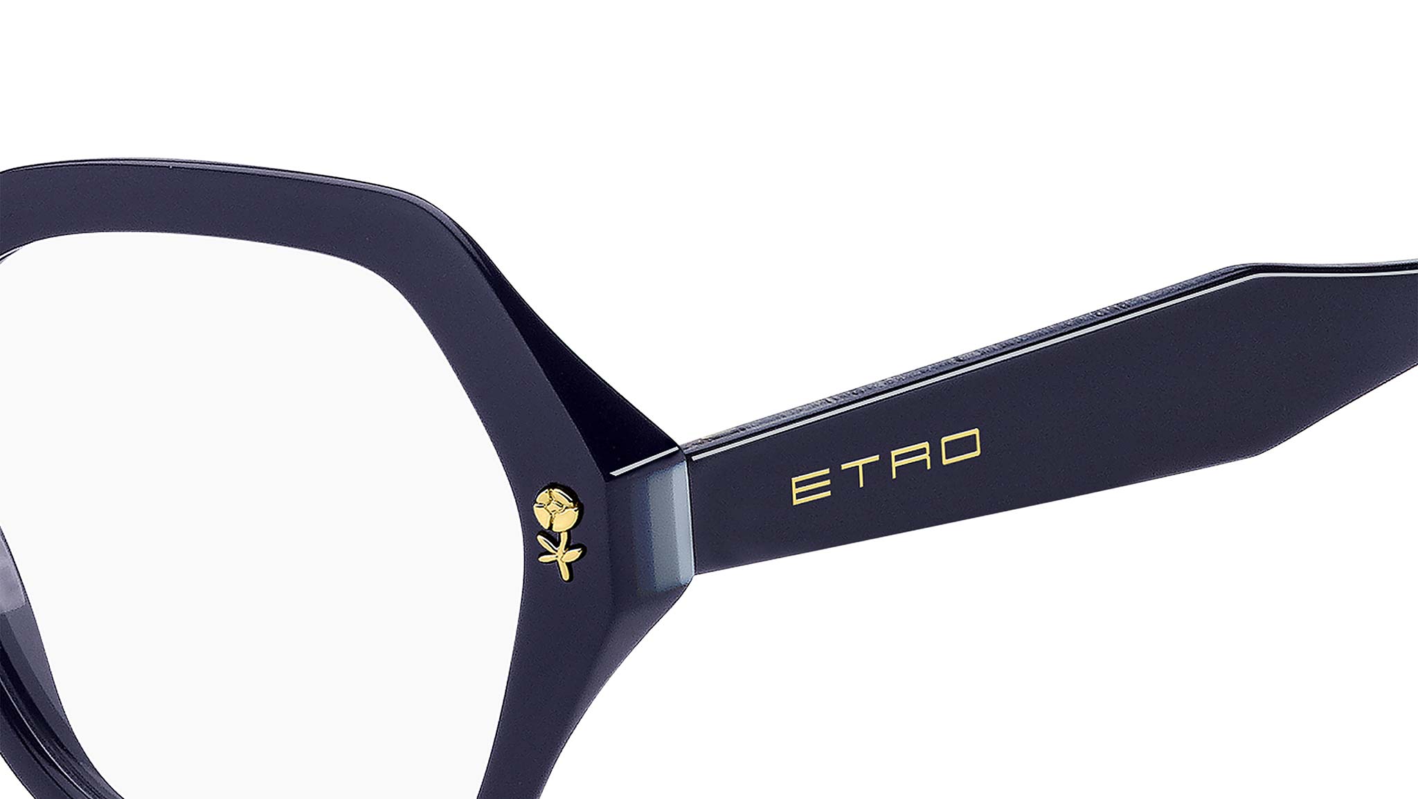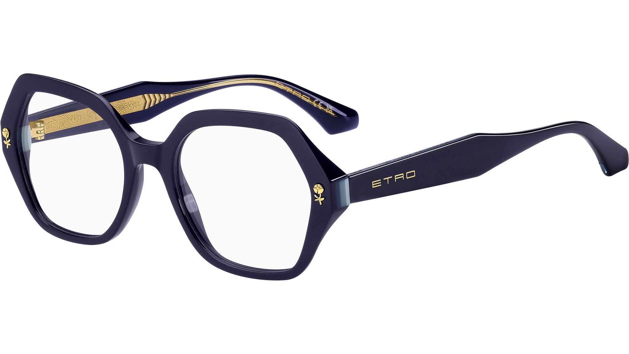 Occhiali da vista ETRO modello 0012 codice colore PJP blu con lenti demo Un omaggio ai motivi floreali e pattern grafici che definiscono l'estetica di ETRO, la collezione eyewear "Graphic Elegance" traduce i ricami e le stampe della Maison in occhiali da vista eclettici e raffinati. La montatura in acetato dagli angoli smussati è impreziosita da un'applicazione in metallo a forma di fiore e un inserto a righe multicolore sui lati. Le aste sono realizzate in acetato trasparente con un'anima interna in metallo. Il design innovativo è completato dagli iconici terminali in acetato, ispirati alla simmetria del logo ETRO. Rivenditore autorizzato online ETRO Eyewear.