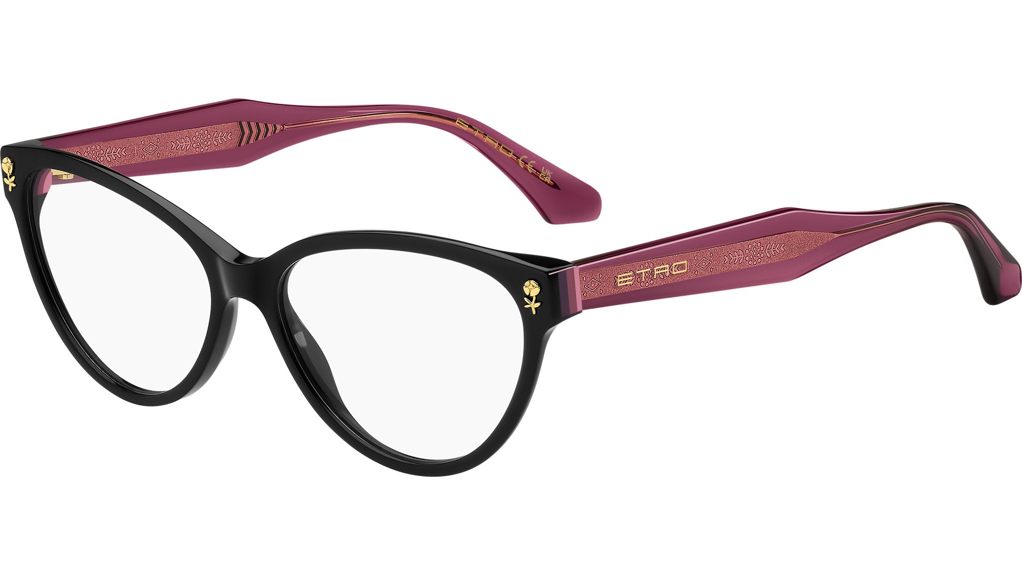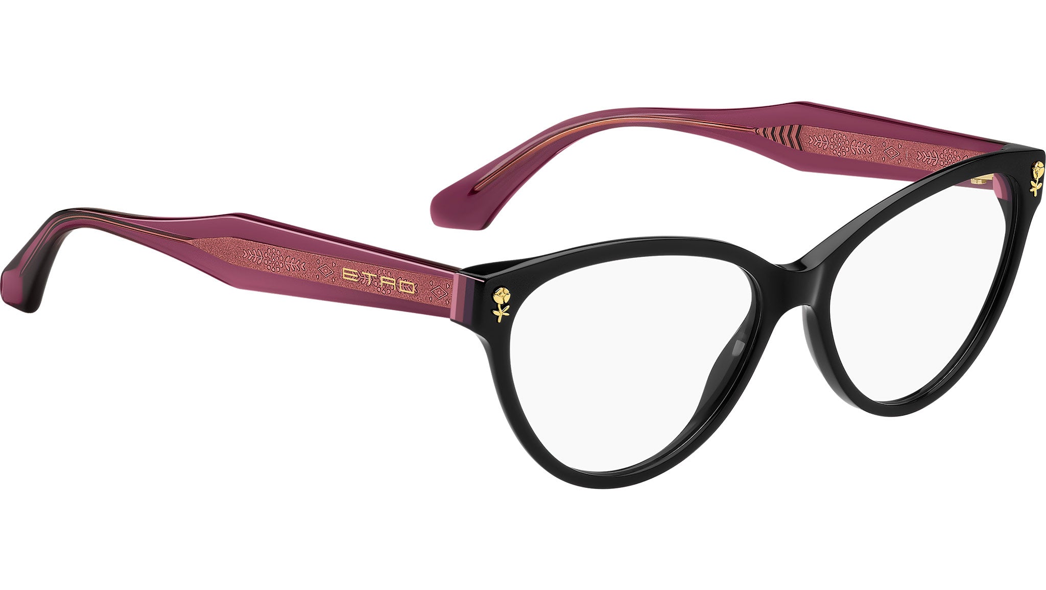 Occhiali da vista Etro 0014 HK8 donna con montatura cat eye in acetato nero viola e lenti demo. Un omaggio ai motivi a righe e pattern floreali che contraddistinguono il codici stilistici di ETRO, la collezione eyewear "Colour Stripes" traduce i ricami e le stampe iconiche della Maison in occhiali da vista dall'estetica eclettica e innovativa. La montatura in acetato dai volumi audaci, rifinita con profili smussati, è arricchita da una preziosa decorazione in metallo a forma di fiore e da un inserto a righe multicolore sui lati. L’anima in metallo visibile attraverso le aste trasparenti aggiunge un tocco grafico. Il design dei terminali in acetato richiama la simmetria del logo ETRO. Linea: Etromania. Codice modello: 108231. Codice colore: HK8. Rivenditore autorizzato Etro online. Gli occhiali vengono consegnati con custodia e accessori originali e sono coperti dalla garanzia ufficiale di 12 mesi del produttore.