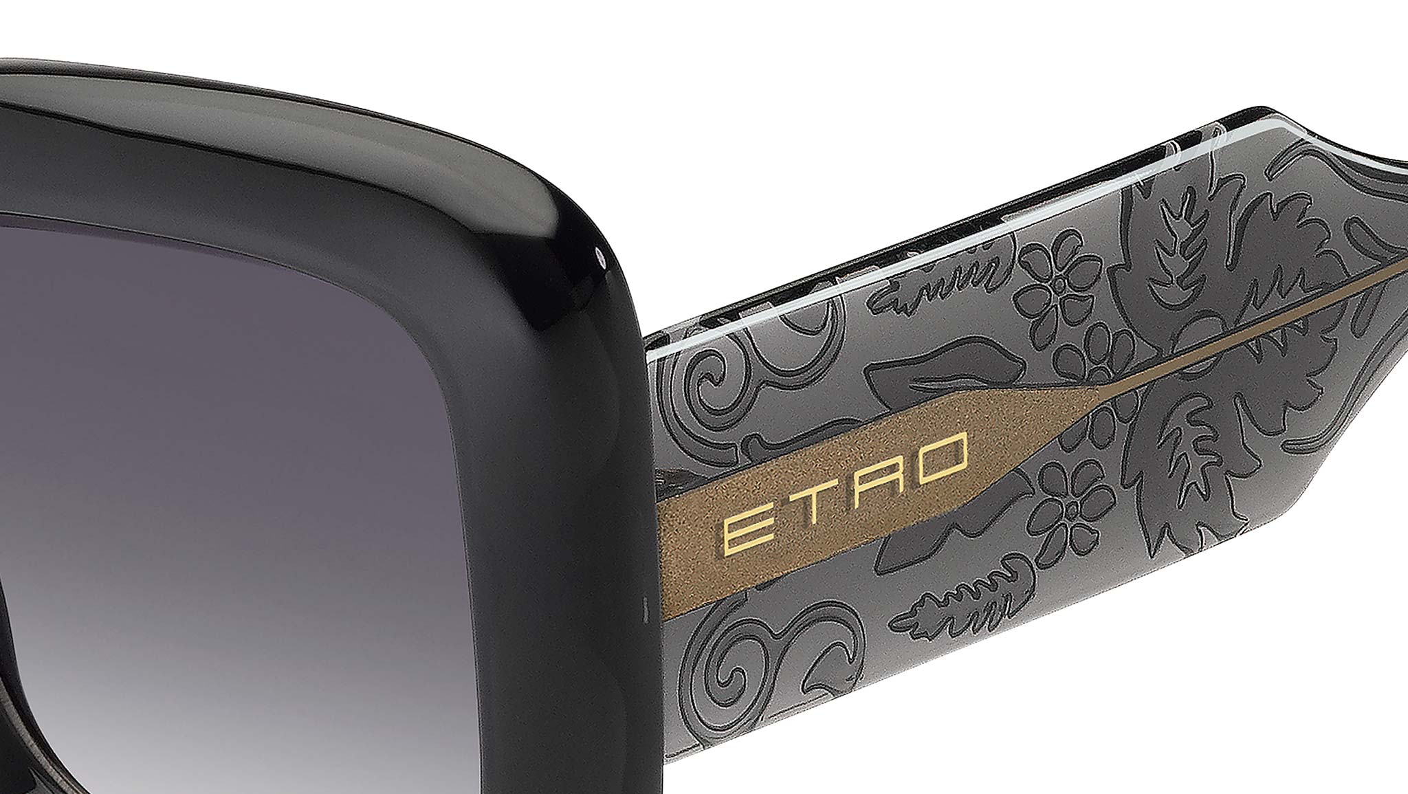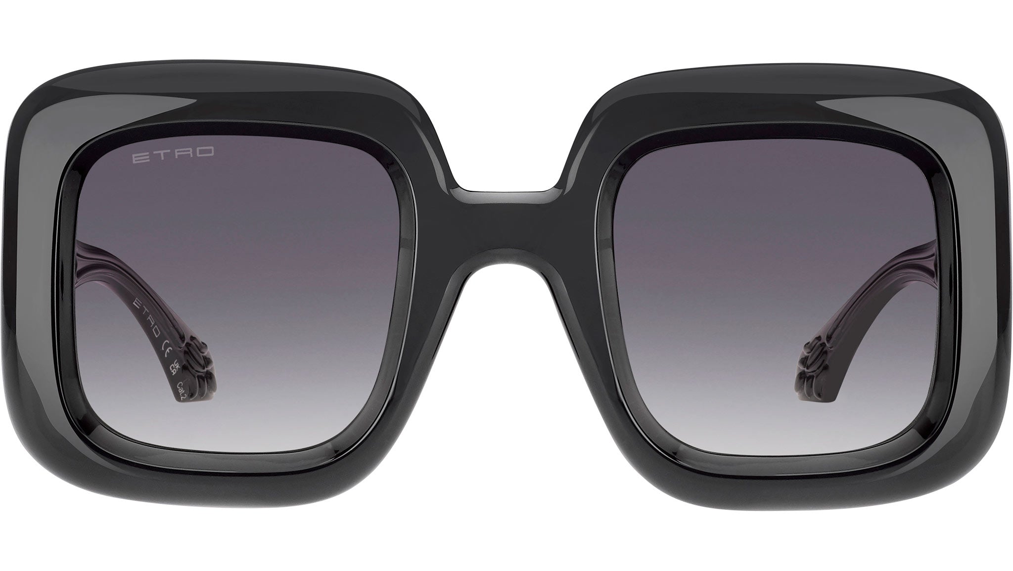 Occhiali da sole ETRO modello 0015/S codice colore KB7 9O in Injected grigio con lenti in CR-39 grigio scuro sfumato. La collezione eyewear "Paisley" di ETRO richiama il codice stilistico più amato della Maison milanese: il motivo cashmere. Conosciuta per i suoi tessuti pregiati, ETRO ha reinterpretato questa grafica tradizionale in un'infinita varietà di espressioni e cromie. Questi occhiali da sole hanno un design leggero e confortevole, caratterizzato dall motivo paisley inciso all'interno delle aste e visibile in trasparenza. La montatura è completata da terminali iconici, lettering ETRO inciso sulle lenti e asta interna in metallo con logo color oro per un tocco prezioso. Rivenditore autorizzato online Dsquared2.