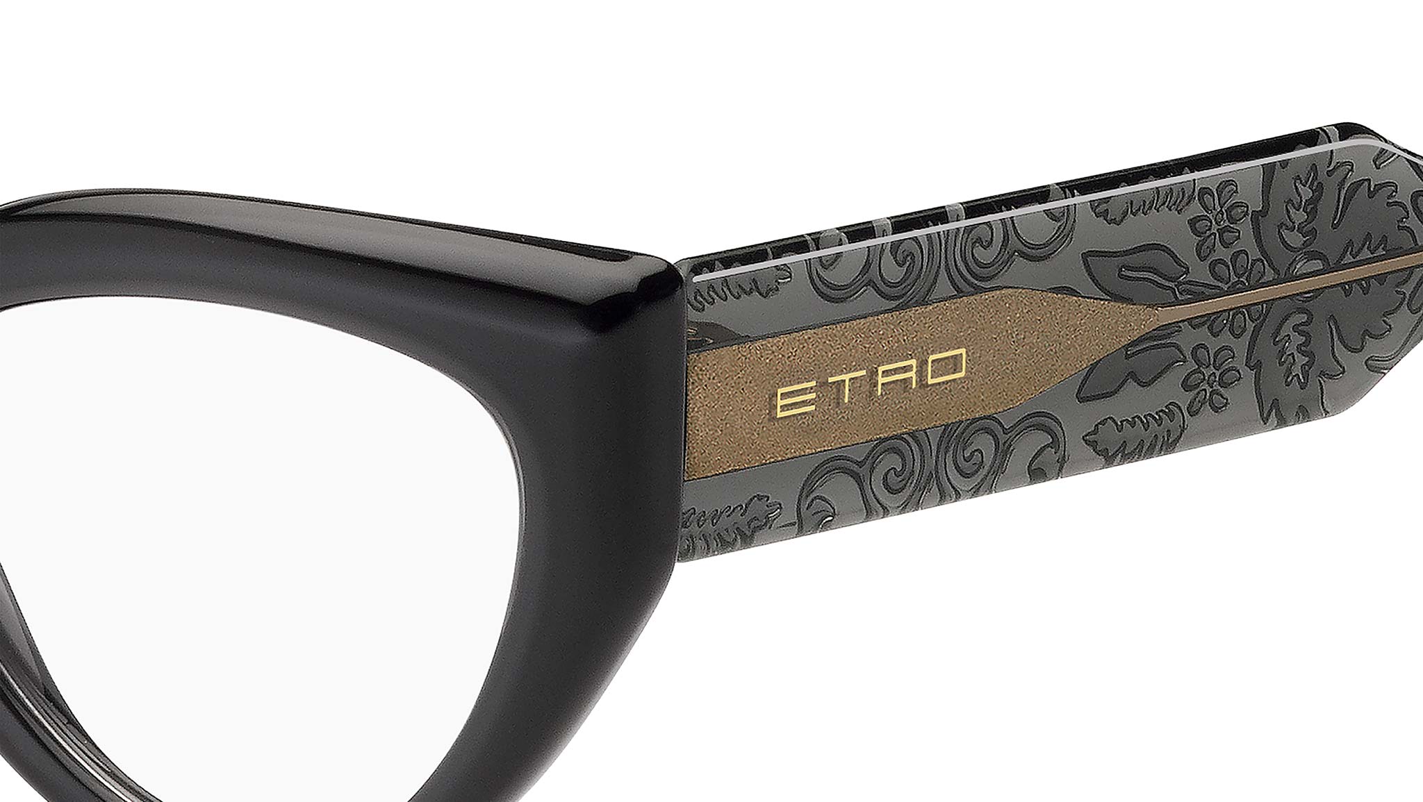 Occhiali da vista ETRO modello 0018 codice colore KB7 grigio con lenti demo La collezione eyewear "Paisley" di ETRO richiama il codice stilistico più amato della Maison milanese: il motivo cashmere. Conosciuta per i suoi tessuti pregiati, ETRO ha reinterpretato questa grafica tradizionale in un'infinita varietà di espressioni e cromie. Questi occhiali da vista hanno un design leggero e confortevole, caratterizzato dall motivo paisley inciso all'interno delle aste e visibile in trasparenza. La montatura è completata da terminali iconici, asta interna in metallo e il logo color oro per un tocco prezioso. Rivenditore autorizzato online ETRO Eyewear.