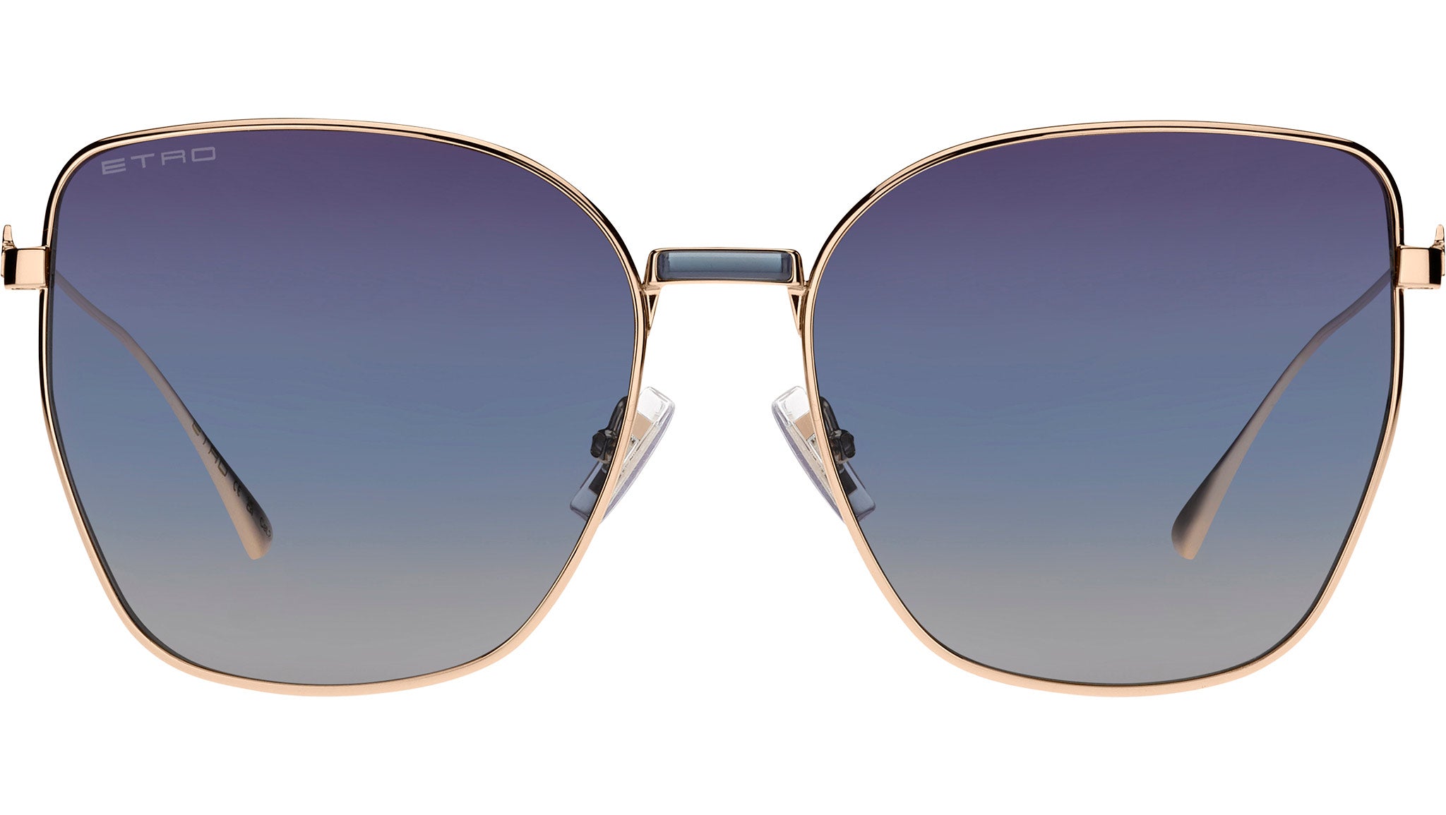 Occhiali da sole ETRO modello 0021/S codice colore 000 UY in metallo oro rosa con lenti in CR-39 blu sfumato grigio. La collezione eyewear "Metal Elegance" di ETRO celebra gli affascinanti giochi cromatici e la tradizione della Maison. Caratterizzati da un'estrema leggerezza e decorazioni inconfondibili, questi occhiali da sole in metallo sono caratterizzati dal ponte con inserti colorati nella stessa tonalità delle lenti sfumate. Il Pegaso tridimensionale sulle aste e i terminali dal design distintivo richiamano con eleganza ed essenzialità lo stile iconico di ETRO. Completati da naselli logati per la massima comodità e il nome del brand inciso sulle lenti. Rivenditore autorizzato online Dsquared2.