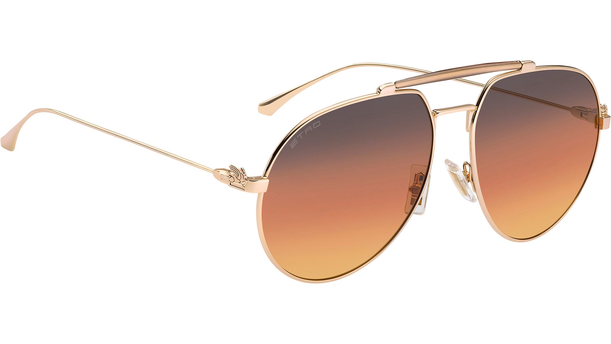 Occhiali da sole ETRO modello 0022/S codice colore 000 V5 in metallo oro rosa con lenti in CR-39 bordeaux arancio. La collezione eyewear "Metal Pegaso" di ETRO celebra gli affascinanti giochi cromatici e la tradizione della Maison. Caratterizzati da un'estrema leggerezza e decorazioni inconfondibili, questi occhiali da sole in metallo sono caratterizzati dal ponte con inserti colorati nella stessa tonalità delle lenti sfumate. Il Pegaso tridimensionale sulle aste e i terminali dal design distintivo richiamano con eleganza ed essenzialità lo stile iconico di ETRO. Completati da naselli logati per la massima comodità e il nome del brand inciso sulle lenti. Rivenditore autorizzato online Dsquared2.