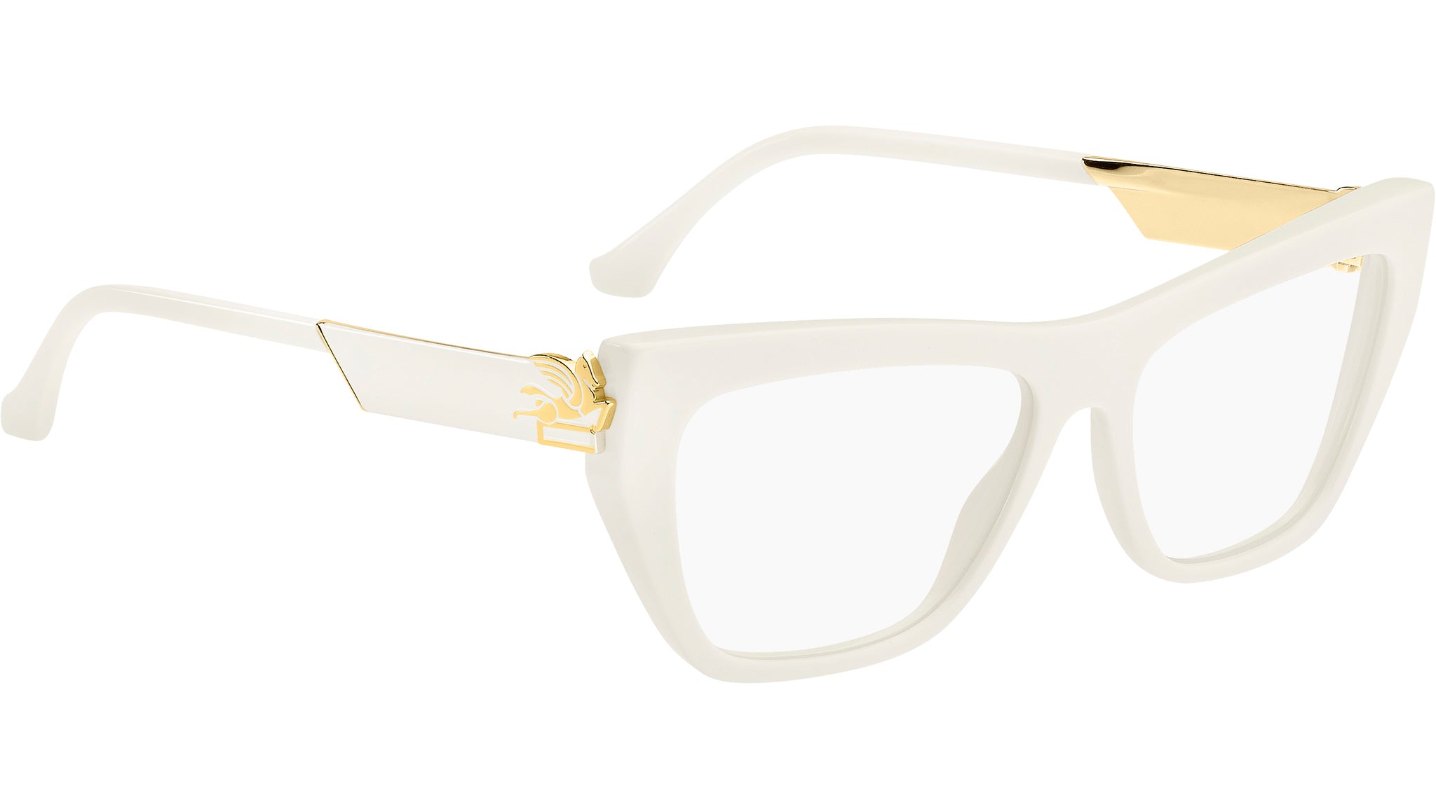 Occhiali da vista ETRO modello 0029 codice colore SZJ avorio con lenti demo Parte della collezione eyewear "Bold Pegaso", questa montatura da vista da donna richiama l'atmosfera ricercata dei gioielli della Maison con un inserto laccato lucido sulle aste, arricchita da una decorazione in metallo che richiama il mitico Pegaso, simbolo della casa di moda milanese. Leggeri e distintivi, questi occhiali da vista presentano un frontale in acetato e aste con terminali iconici che ricreano la simmetria del logo ETRO. Rivenditore autorizzato online ETRO Eyewear.