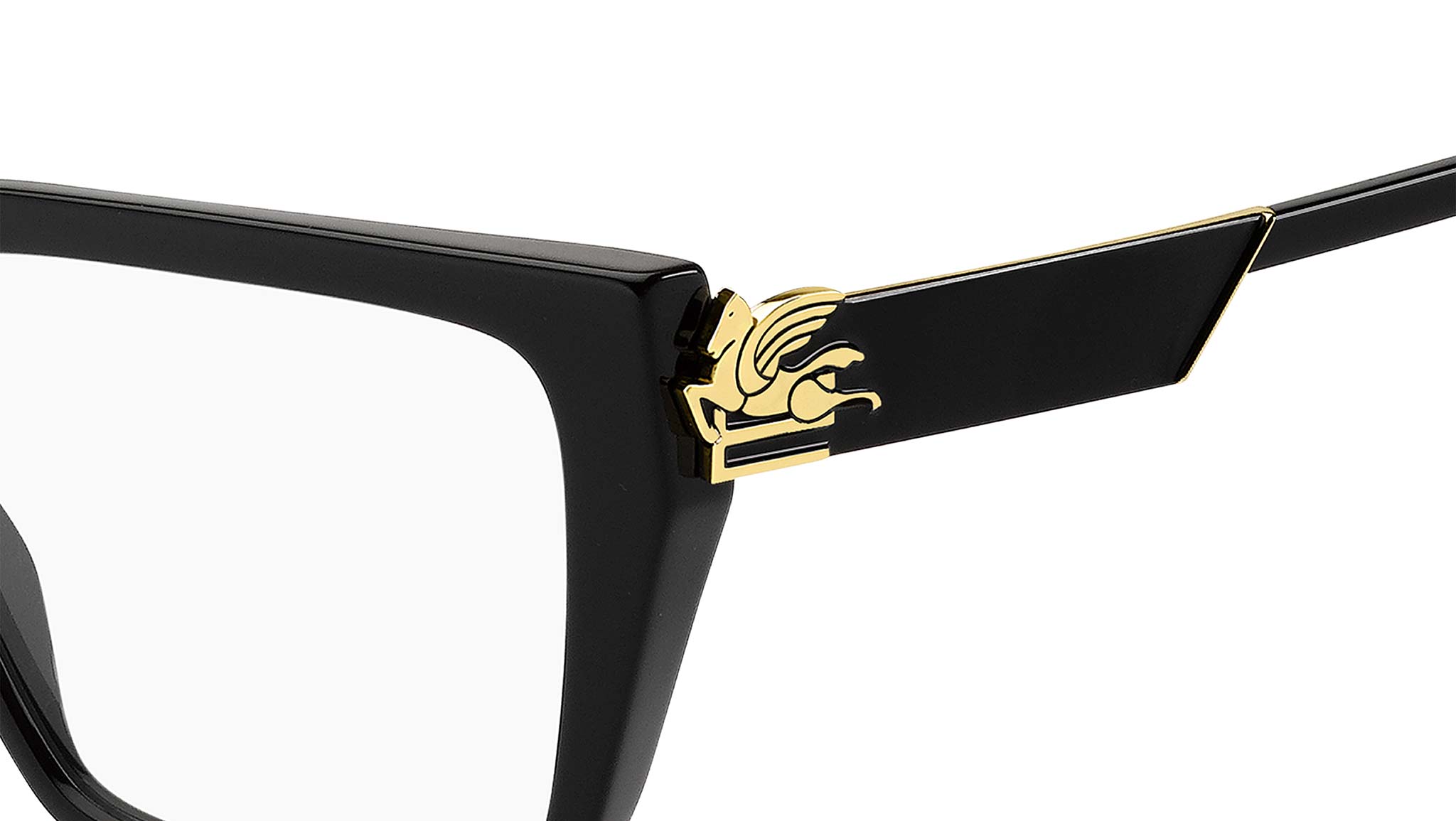 Occhiali da vista ETRO modello 0030 codice colore 807 nero con lenti demo Parte della collezione eyewear "Bold Pegaso", questa montatura da vista da donna richiama l'atmosfera ricercata dei gioielli della Maison con un inserto laccato lucido sulle aste, arricchita da una decorazione in metallo che richiama il mitico Pegaso, simbolo della casa di moda milanese. Leggeri e distintivi, questi occhiali da vista presentano un frontale in acetato e aste con terminali iconici che ricreano la simmetria del logo ETRO. Rivenditore autorizzato online ETRO Eyewear.