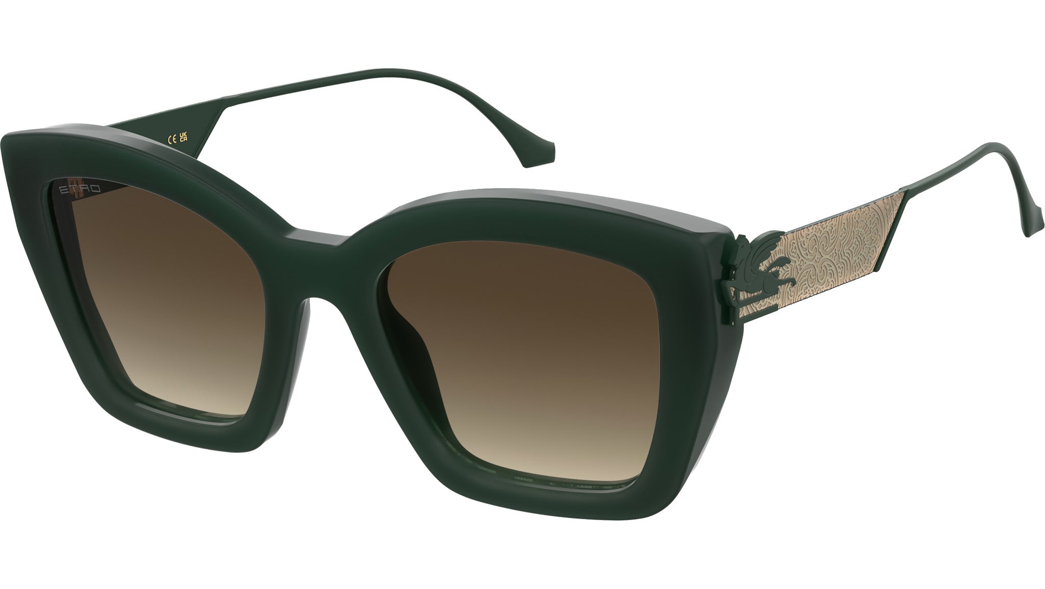 Occhiali da sole Etro 0039/G/S 1ED HA donna con montatura butterfly in acetato verde e lenti in CR-39 marrone sfumato. Linea: Etromania. Codice modello: 207312. Codice colore: 1ED HA. Rivenditore autorizzato Etro online. Gli occhiali vengono consegnati con custodia e accessori originali e sono coperti dalla garanzia ufficiale di 12 mesi del produttore.