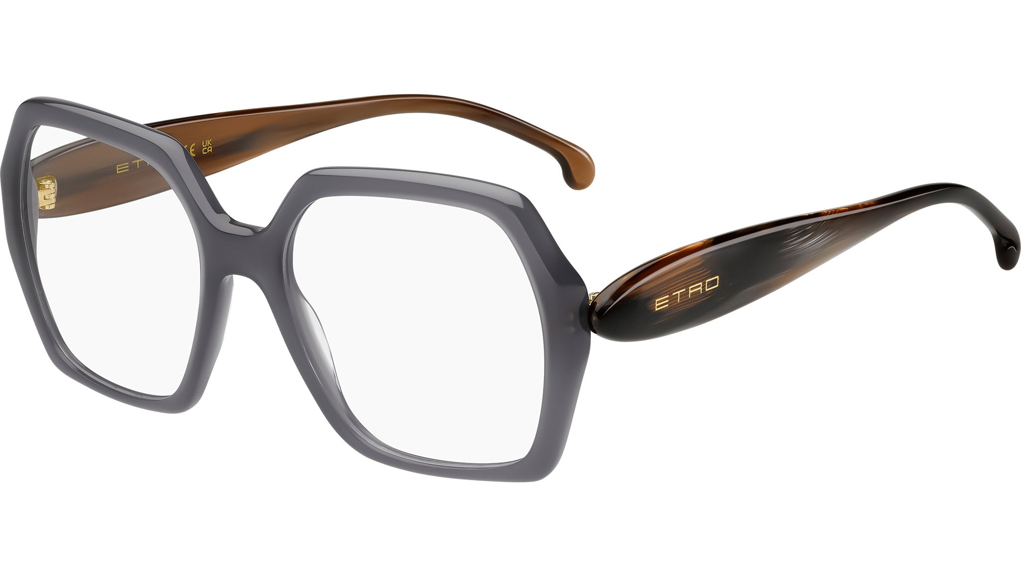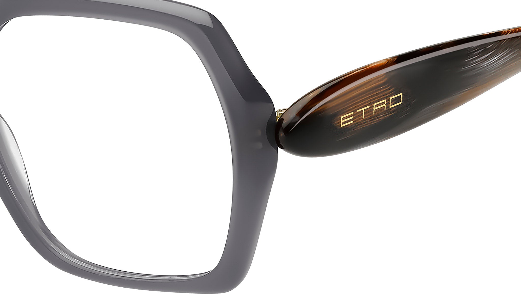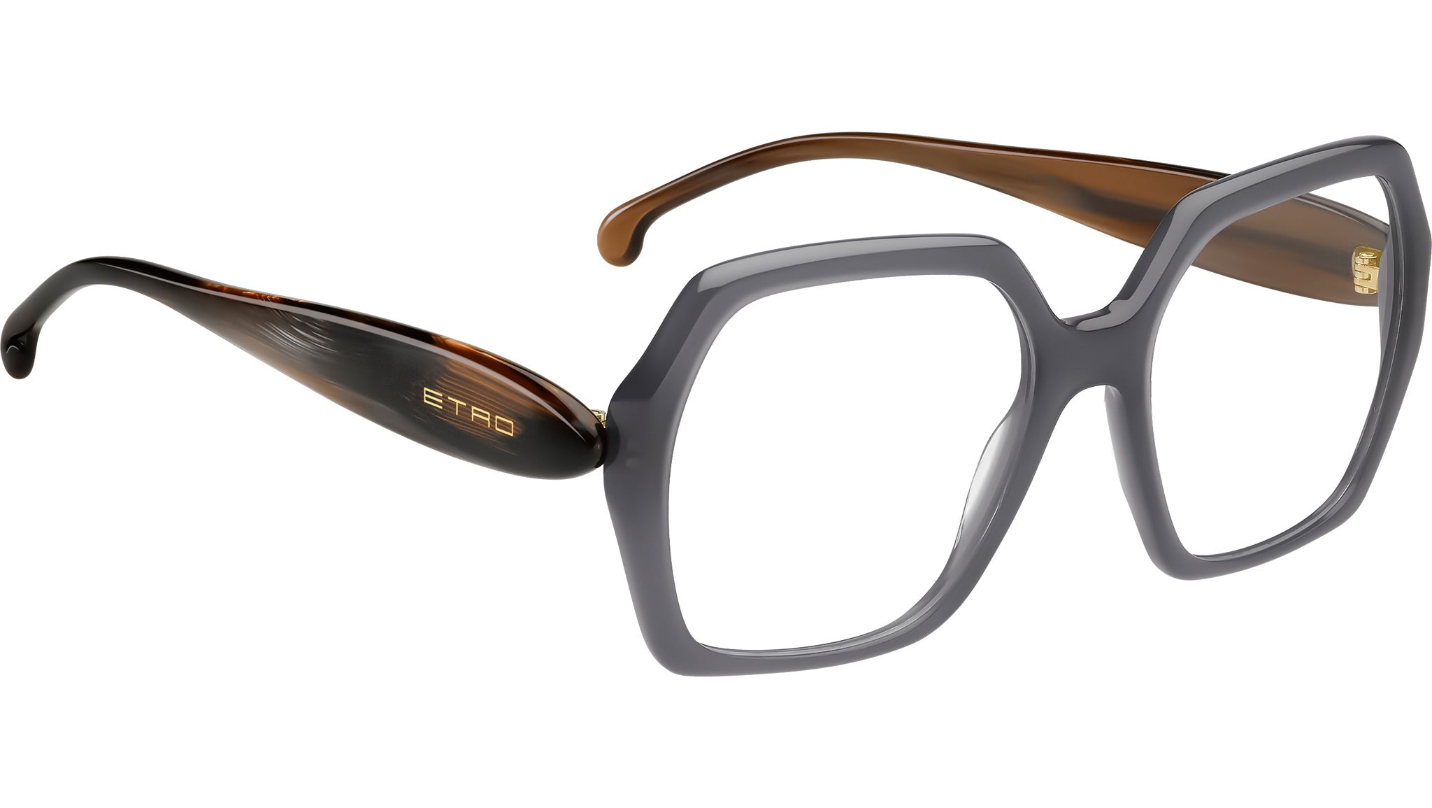 Occhiali da vista Etro 0088 KB7 donna con montatura squadrata in acetato grigio e lenti demo. Emblema dello spirito ETRO, la collezione eyewear 'Etropaisley' celebra il motivo inconfondibile del brand in tutte le sue forme e varianti cromatiche. Questi occhiali da vista richiamano un'opera d'arte, con una montatura geometrica dalle curve morbide e aste ondulate. L'accento è posto sulle proporzioni delicate e sulle combinazioni audaci di colori, incluse irresistibili varianti bicolore. Ogni modello è arricchito dal logo ETRO e dai terminali distintivi, che riprendono la geometria arrotondata del motivo Paisley. Linea: Etromania. Codice modello: 109290. Codice colore: KB7. Rivenditore autorizzato Etro online. Gli occhiali vengono consegnati con custodia e accessori originali e sono coperti dalla garanzia ufficiale di 12 mesi del produttore.