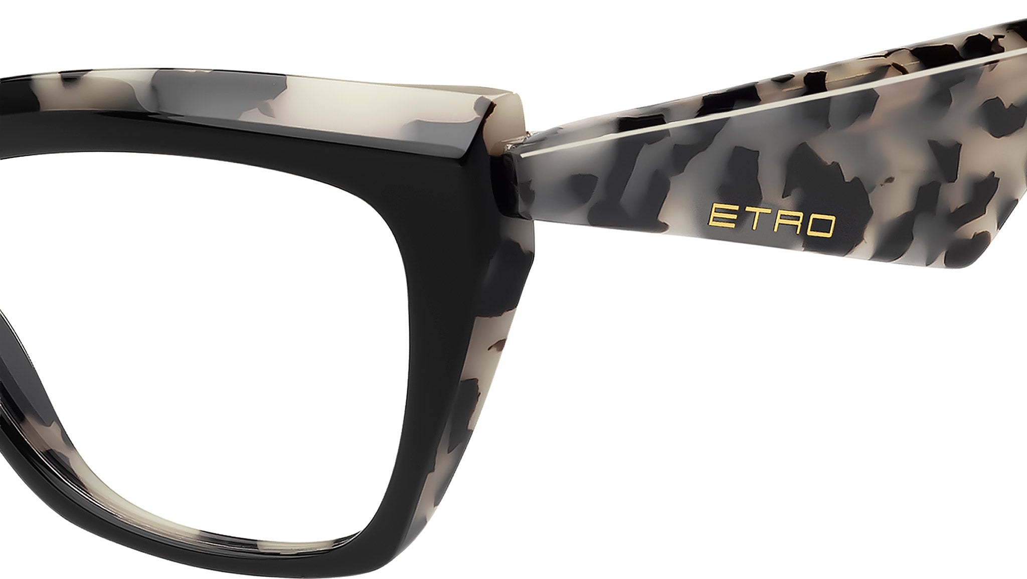 Occhiali da vista Etro 0098 TCB donna con montatura rettangolare in acetato nero bianco avana e lenti demo. La collezione eyewear 'Tailoring' di ETRO gioca con il volume e le proporzioni, trasformando i design classici in qualcosa di straordinario. Questi occhiali da vista combinano un audace frontale in acetato con spigoli smussati e aste geometriche, fissate sui lati del frontale, creando un perfetto equilibrio tra tradizione e modernità. Sorprendentemente leggeri e facili da indossare, sono disponibili in eleganti tonalità piene e in varianti colorblock, per un contrasto unico e sofisticato. I loghi minimal e i terminali iconici del brand completano ogni modello con dettagli sottili ma stilosi. Linea: Tailoring. Codice modello: 109293. Codice colore: TCB. Rivenditore autorizzato Etro online. Gli occhiali vengono consegnati con custodia e accessori originali e sono coperti dalla garanzia ufficiale di 12 mesi del produttore.