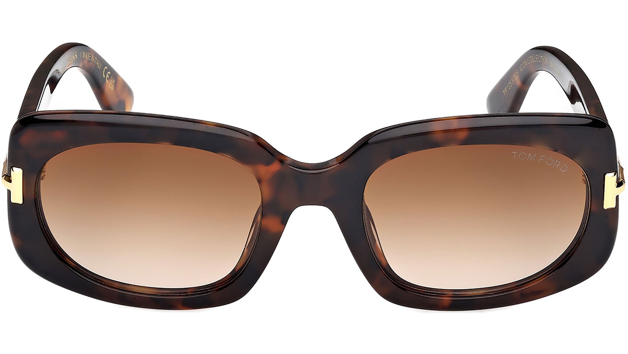 Occhiali da sole Tom Ford donna modello Icon FT1253 con montatura rettangolare full-rim in acetato avana scuro e lenti color marrone sfumato. Codice Brand: 1253. Codice colore: 52F. Rivenditore autorizzato Tom Ford online. Gli occhiali vengono consegnati con custodia e accessori originali e sono coperti da garanzia standard di 12 mesi del produttore.