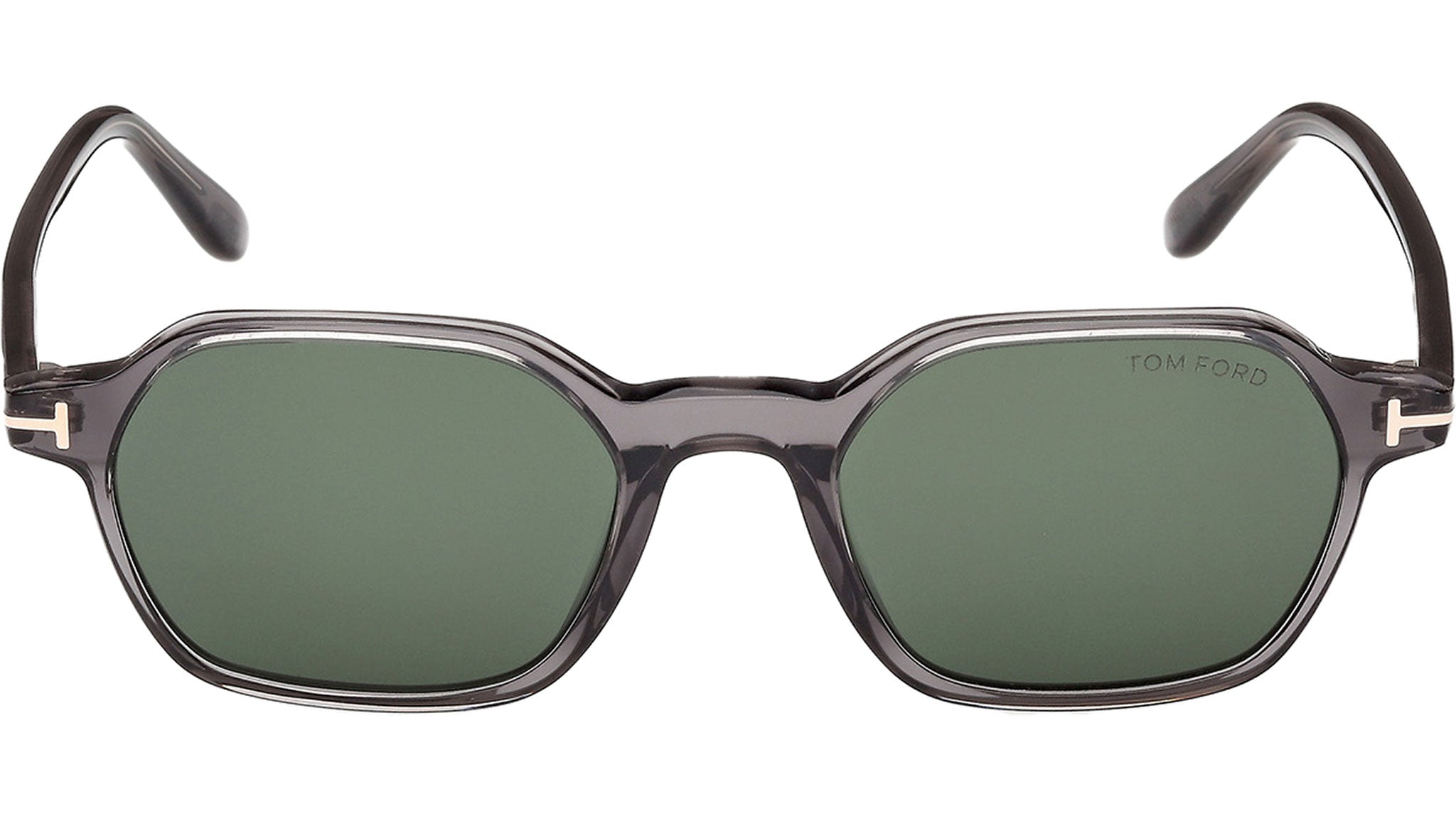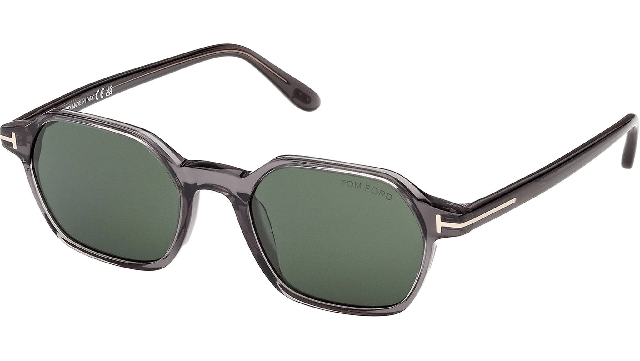 Occhiali da sole Tom Ford uomo modello Joey-02 FT1301 con montatura geometrica full-rim in acetato grigio lucido e lenti color verde. Codice Brand: 1301. Codice colore: 20N. Rivenditore autorizzato Tom Ford online. Gli occhiali vengono consegnati con custodia e accessori originali e sono coperti da garanzia standard di 12 mesi del produttore.