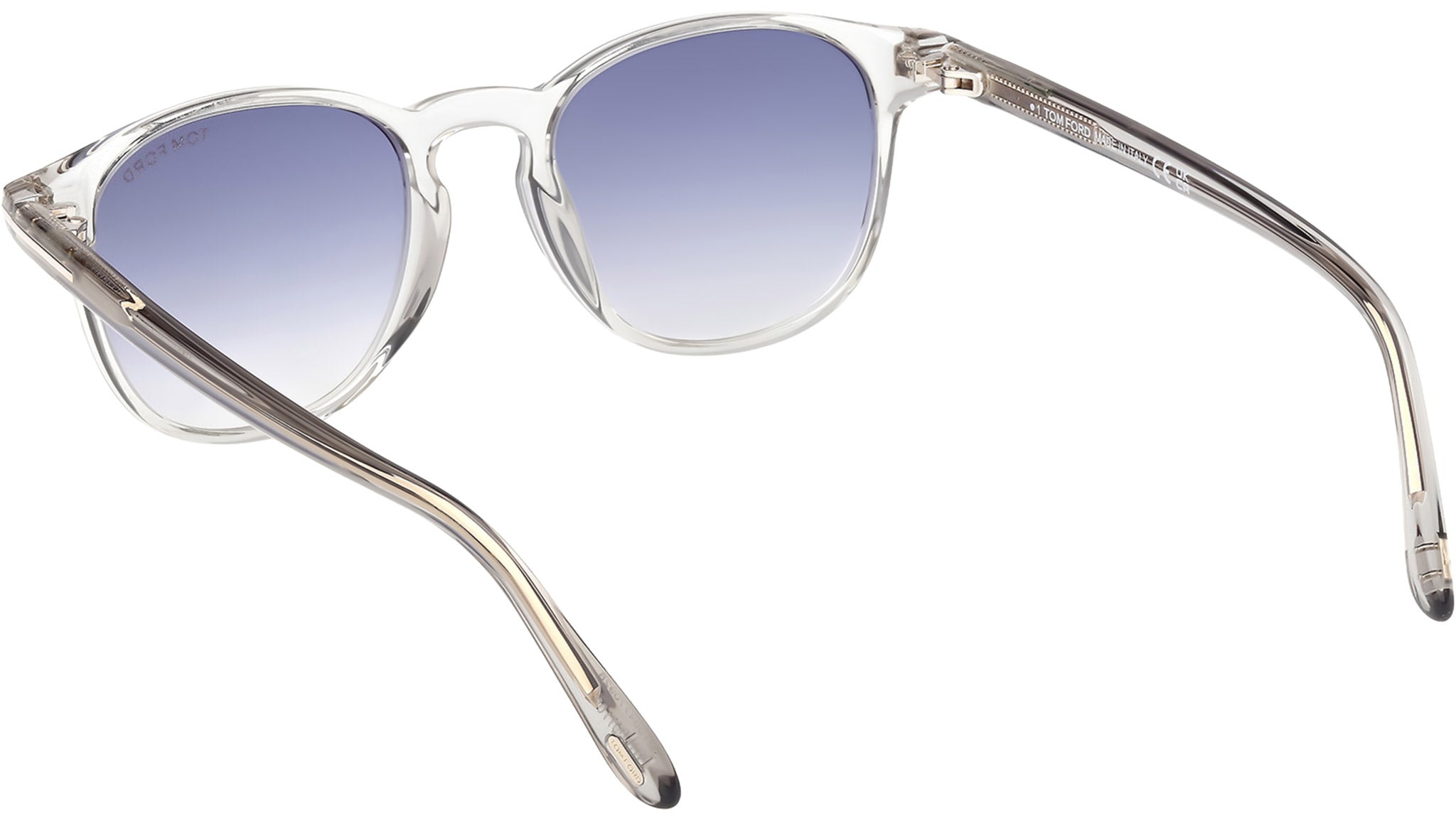 Occhiali da sole Tom Ford uomo modello Holt-02 FT1302 con montatura rotonda full-rim in acetato grigio lucido e lenti color blu sfumato. Codice Brand: 1302. Codice colore: 20W. Rivenditore autorizzato Tom Ford online. Gli occhiali vengono consegnati con custodia e accessori originali e sono coperti da garanzia standard di 12 mesi del produttore.