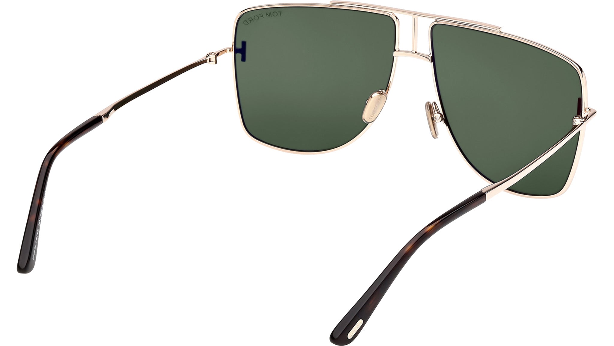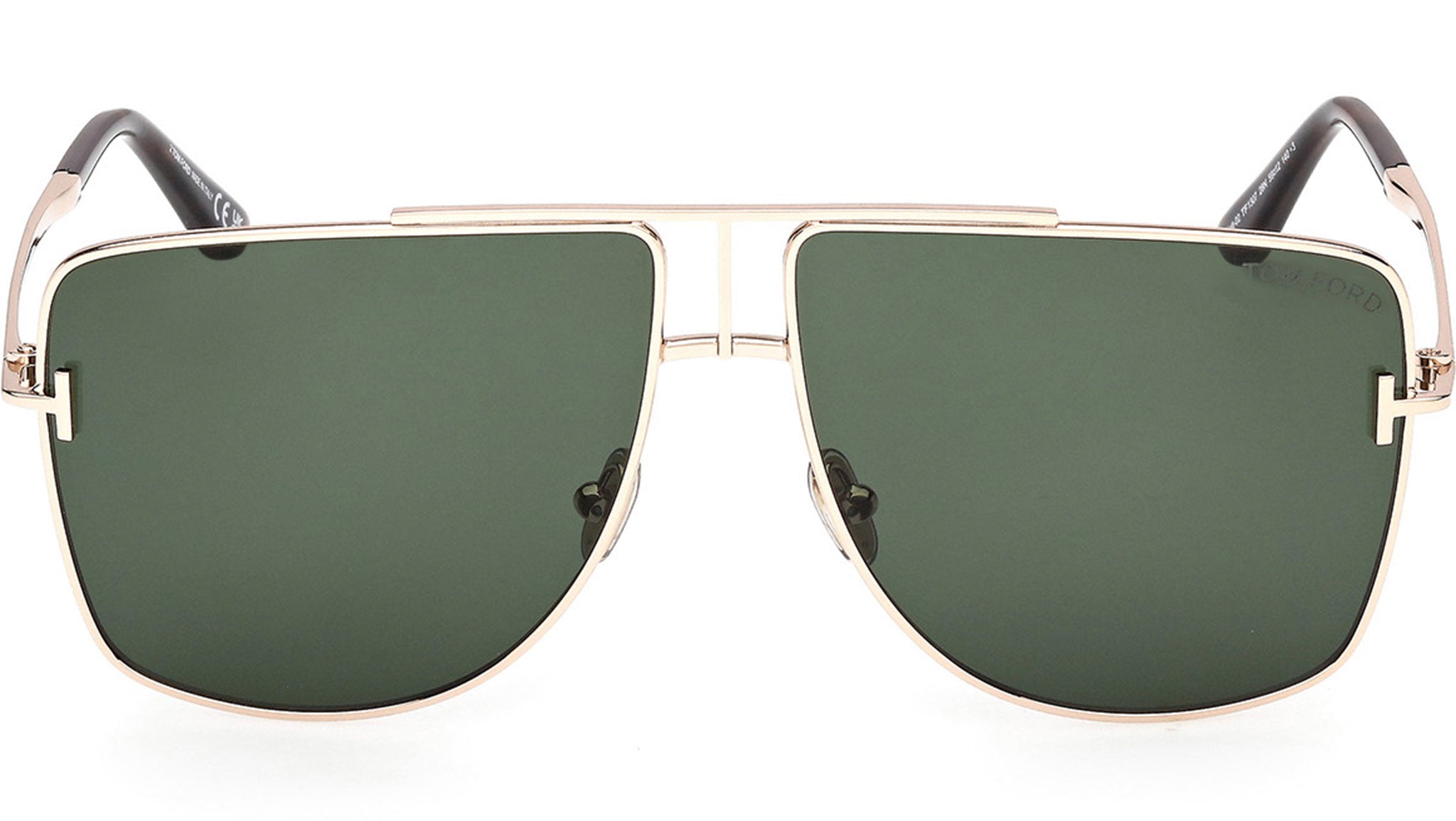 Occhiali da sole Tom Ford unisex modello Eliott-02 FT1307 con montatura navigator full-rim in metallo oro rosa e lenti color verde. Codice Brand: 1307. Codice colore: 28N. Rivenditore autorizzato Tom Ford online. Gli occhiali vengono consegnati con custodia e accessori originali e sono coperti da garanzia standard di 12 mesi del produttore.