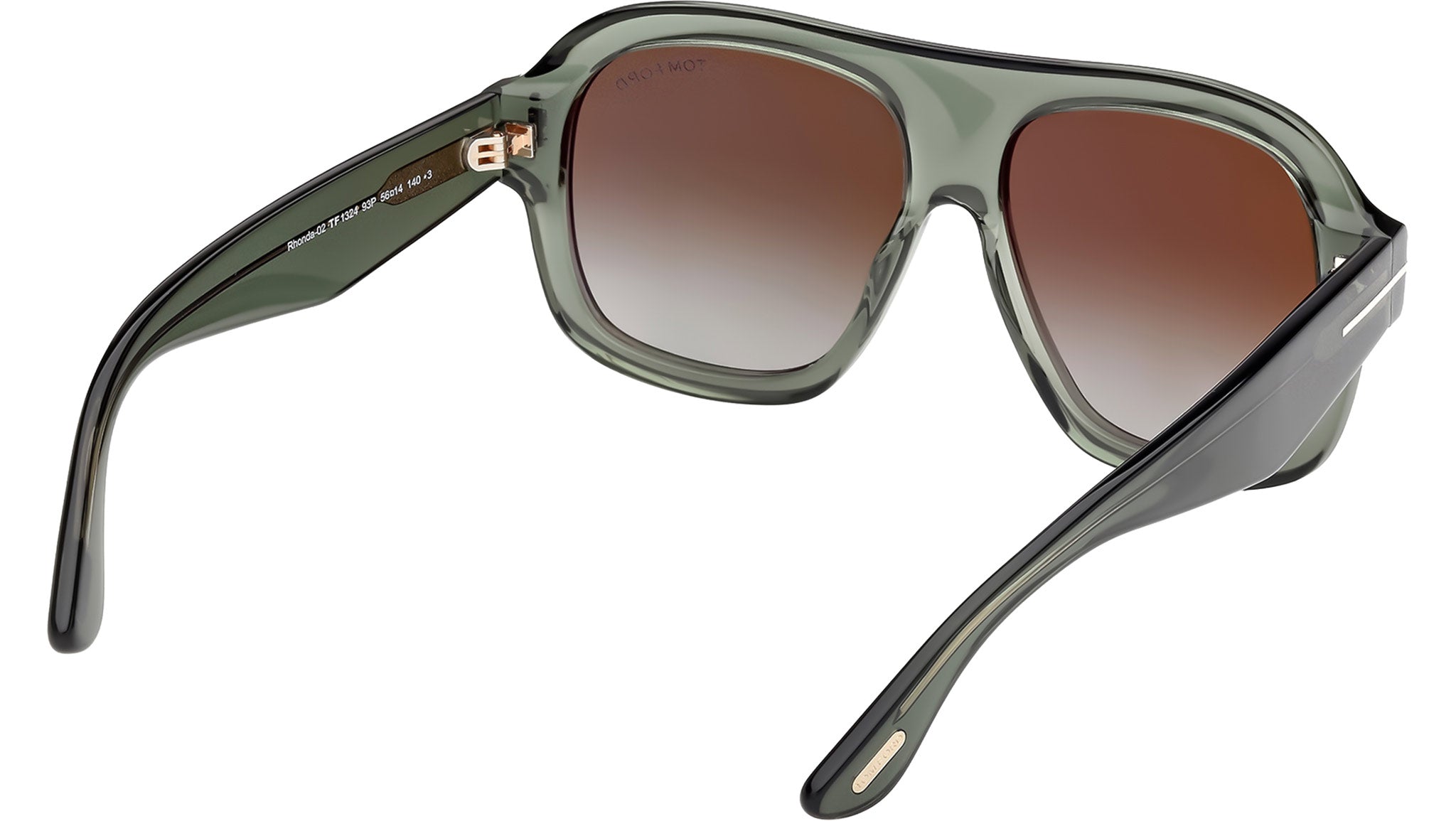 Occhiali da sole Tom Ford donna modello Rhonda-02 FT1324 con montatura navigator full-rim in acetato verde chiaro e lenti color verde sfumato. Codice Brand: 1324. Codice colore: 93P. Rivenditore autorizzato Tom Ford online. Gli occhiali vengono consegnati con custodia e accessori originali e sono coperti da garanzia standard di 12 mesi del produttore.