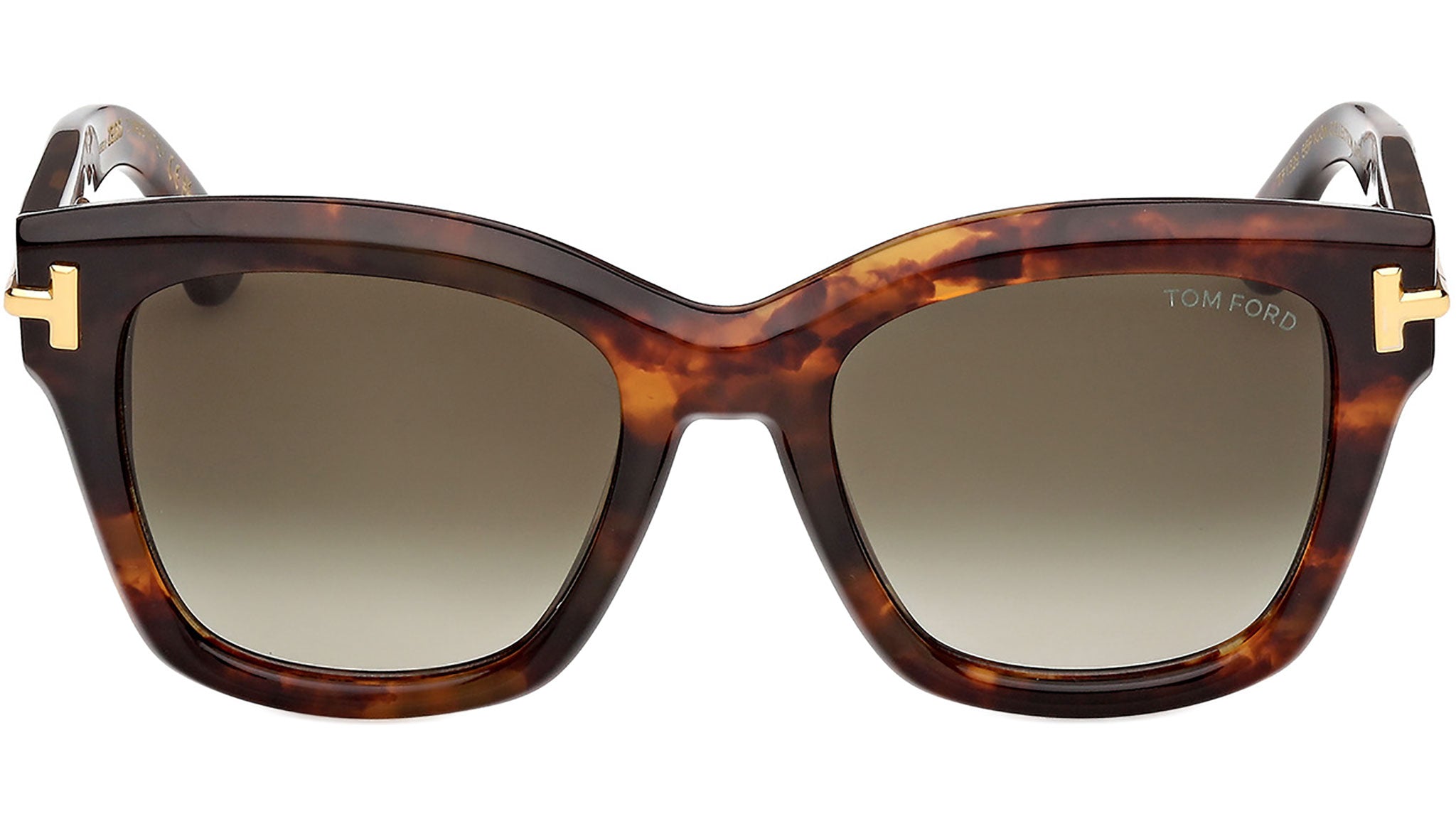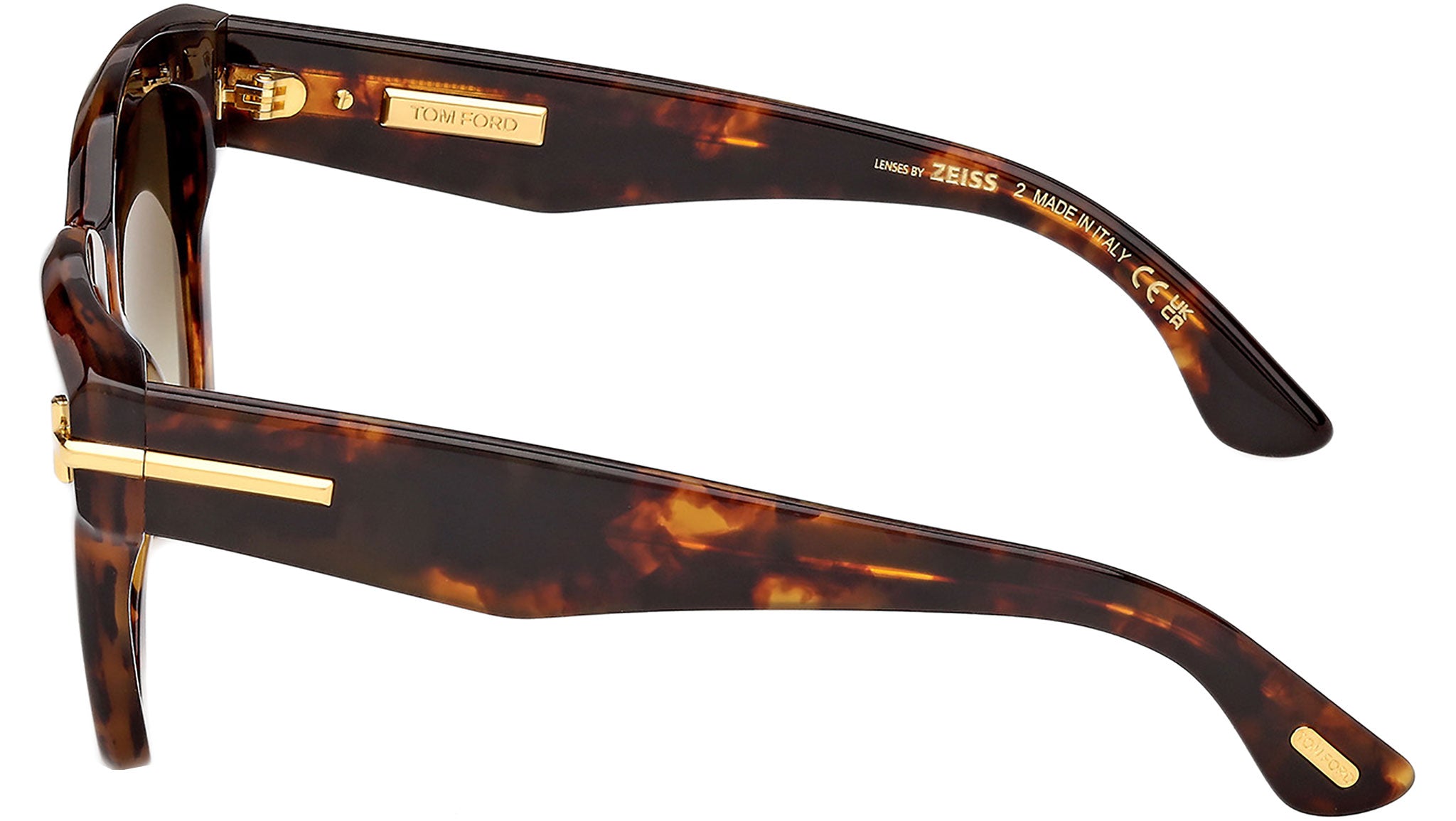 Occhiali da sole Tom Ford donna modello Icon FT1329 con montatura a farfalla full-rim in acetato avana colorato e lenti color verde sfumato. Codice Brand: 1329. Codice colore: 55P. Rivenditore autorizzato Tom Ford online. Gli occhiali vengono consegnati con custodia e accessori originali e sono coperti da garanzia standard di 12 mesi del produttore.