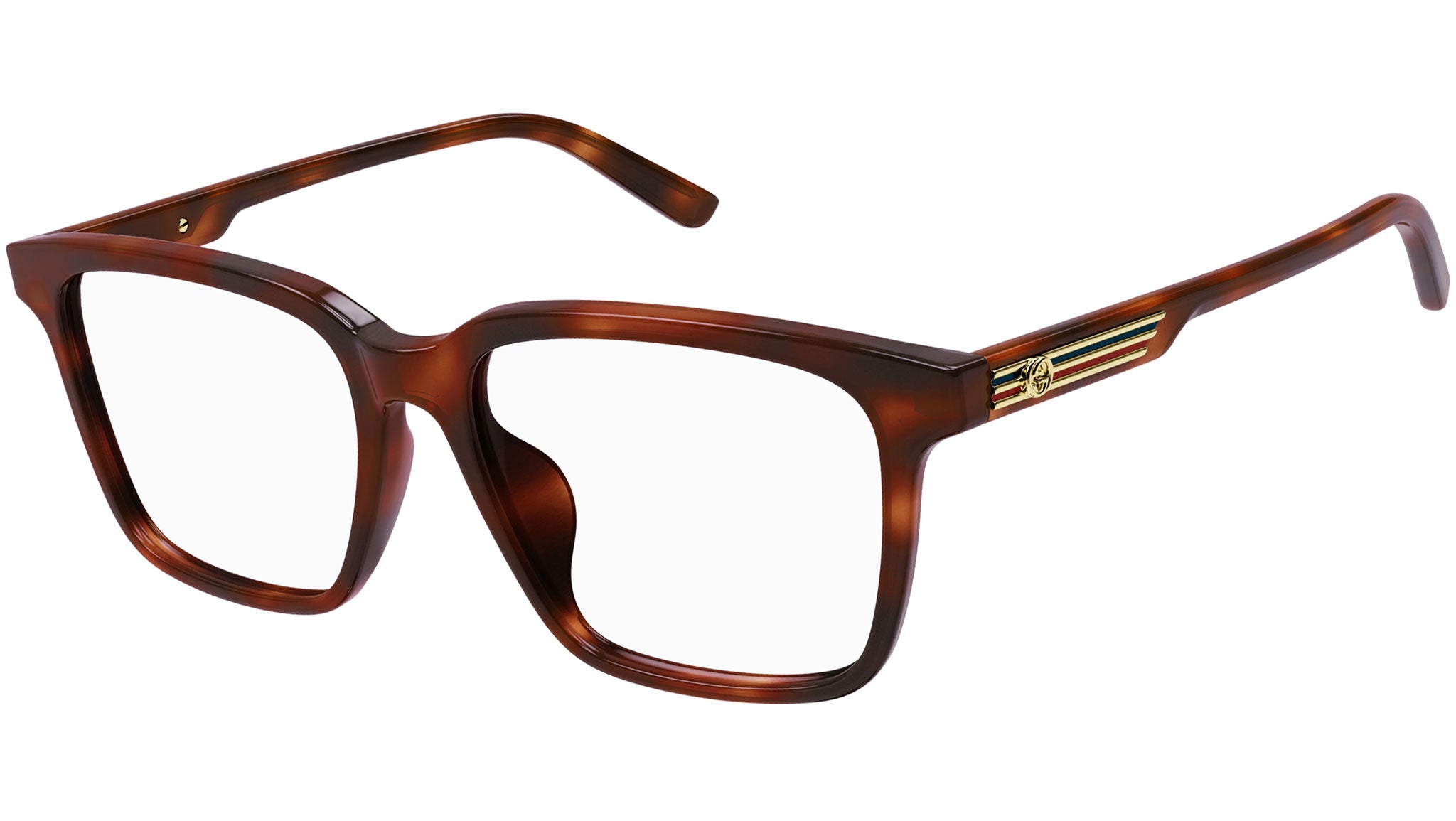 Occhiali da vista linea Gucci Logo modello GG1293OA variante colore 002 tartaruga scuro lucido con astine color tartaruga.