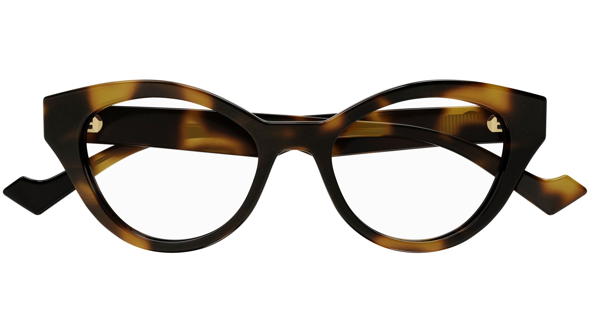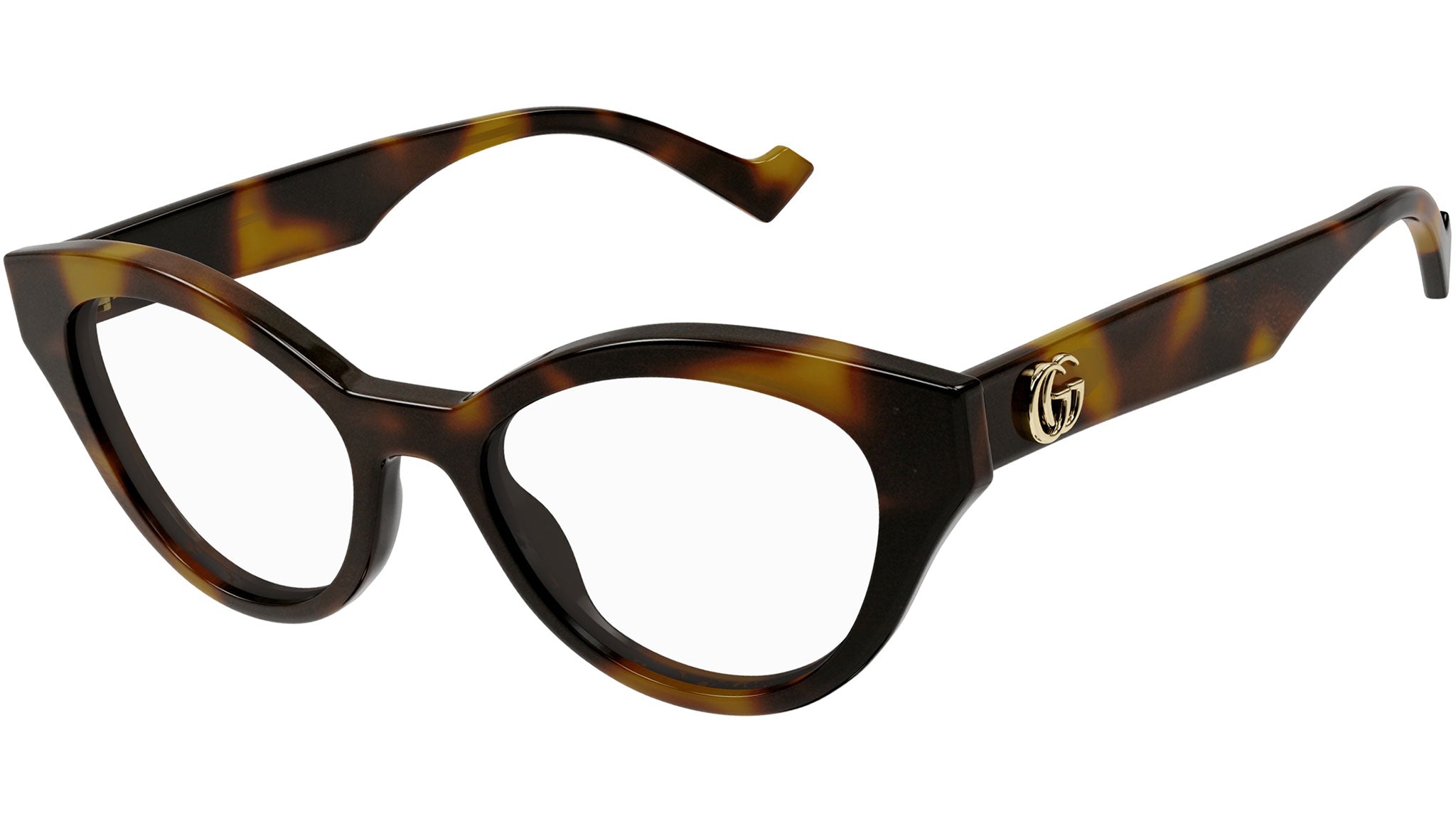Occhiali da vista Gucci linea Gucci Logo modello GG0959O 004 in acetato tartaruga scuro lucido con aste color tartaruga e lenti demo.