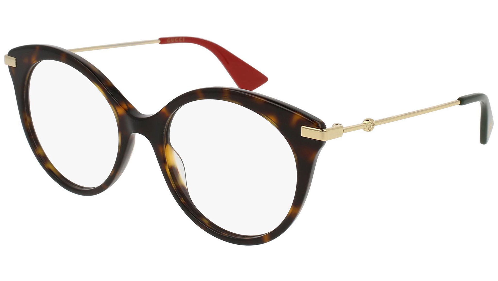 Gucci optical collection model GG0109O 002 featuring shiny dark havana frame and gold temple. Gucci Eyewear offer eclectic and contemporary creations that represent the pinnacle of Italian craftsmanship and are unsurpassed in quality, attention to detail and imaginative design. Buy your frames online and take them to your local optician to fit prescription lenses.