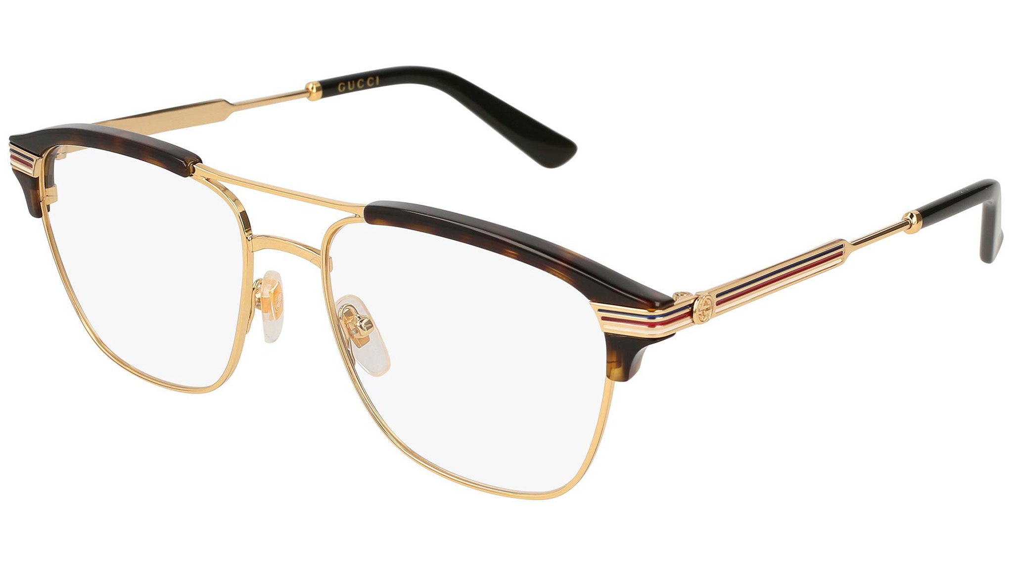 Gucci optical collection model GG0241O 003 featuring shiny endura gold / shiny dark havana frame and gold temple. Gucci Eyewear offer eclectic and contemporary creations that represent the pinnacle of Italian craftsmanship and are unsurpassed in quality, attention to detail and imaginative design. Buy your frames online and take them to your local optician to fit prescription lenses.