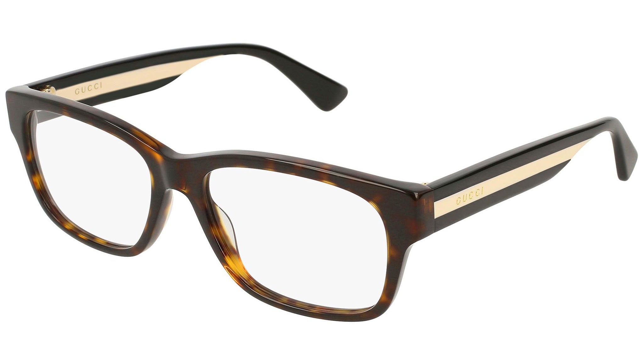 Gucci optical collection model GG0343O 008 featuring shiny dark havana frame and multicolor temple. Gucci Eyewear offer eclectic and contemporary creations that represent the pinnacle of Italian craftsmanship and are unsurpassed in quality, attention to detail and imaginative design. Buy your frames online and take them to your local optician to fit prescription lenses.