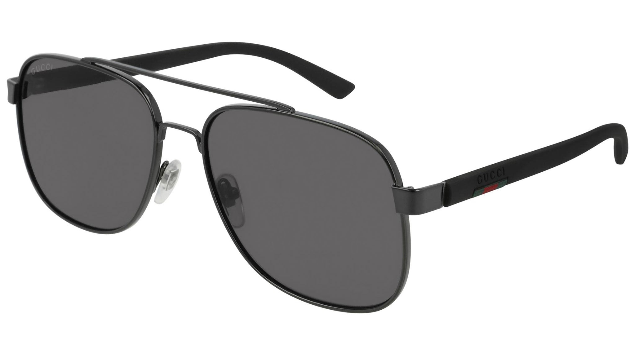Occhiali da sole Gucci GG0422S 001 con montatura rutenio nero lucido e lenti color grigio. Eclettici, moderni, romantici: i prodotti Gucci Eyewear rappresentano la punta di diamante dell'artigianalità italiana, in quanto a qualità e attenzione ai dettagli. Innovativo, prestigioso e audace, Gucci sta reinventando un approccio alla moda totalmente moderno. Nella sua nuova vision creativa, la Maison ha redifinito il concetto di lusso per il 21mo secolo.