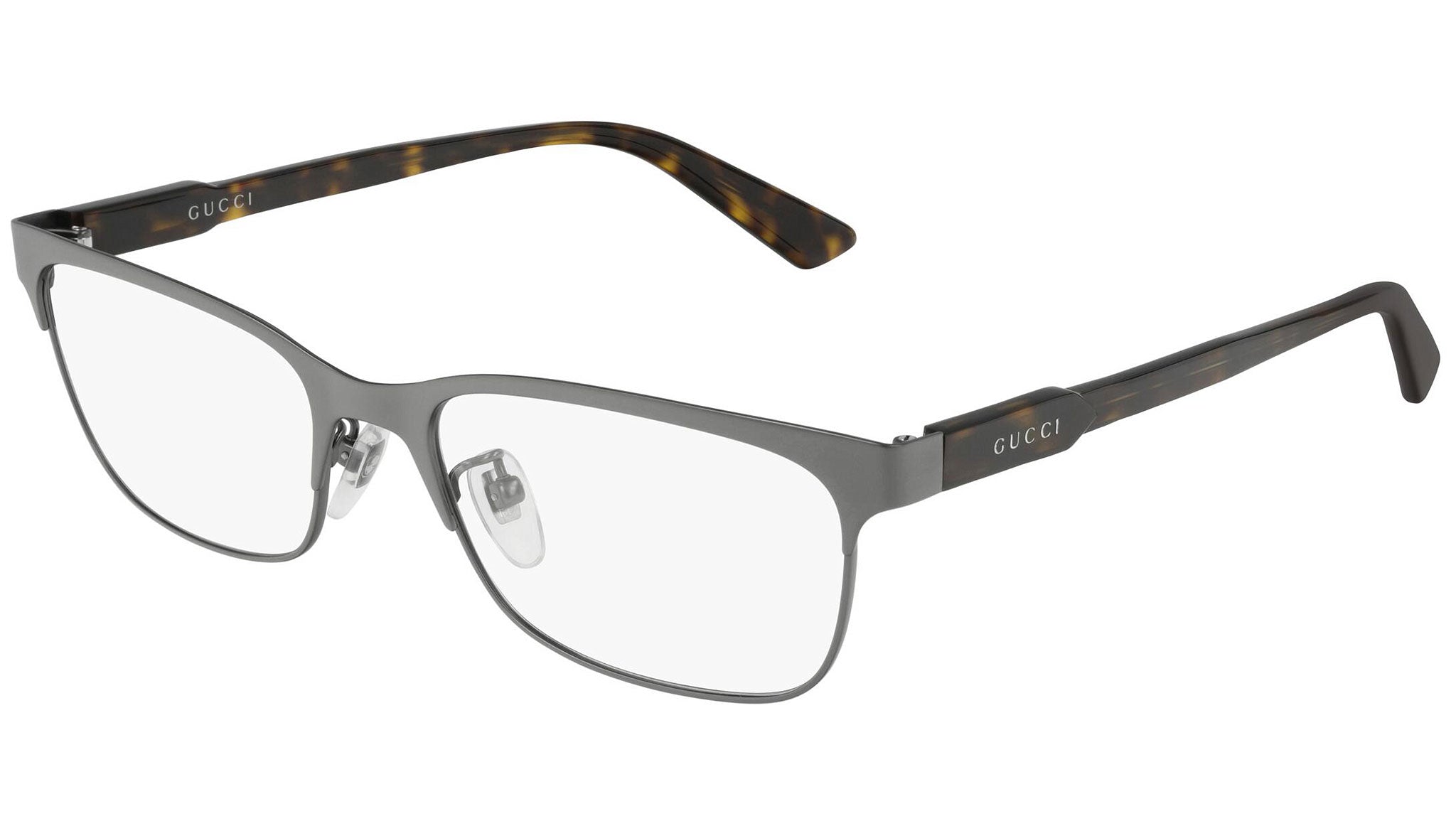 Gucci optical collection model GG0494OJ 002 featuring semi shiny ruthenium frame and havana temple. Gucci Eyewear offer eclectic and contemporary creations that represent the pinnacle of Italian craftsmanship and are unsurpassed in quality, attention to detail and imaginative design. Buy your frames online and take them to your local optician to fit prescription lenses.