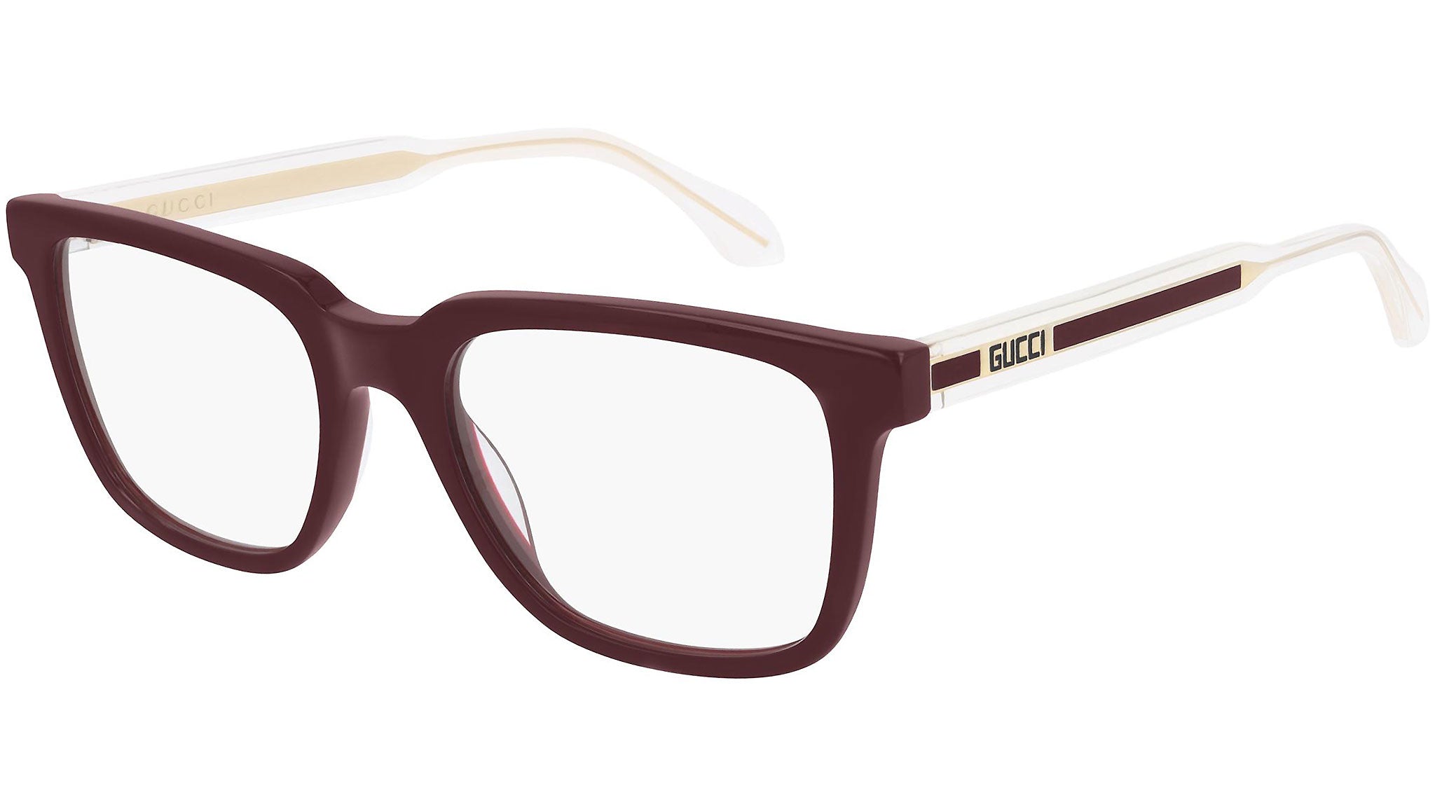 Occhiali da vista Gucci Seasonal Icon modello 0560ON, variante colore 007 bordeaux tinta unita lucido con astine color cristallo trasparente. Montature eclettiche e modelli intramontabili: la linea sole Gucci rappresenta la punta di diamante dell'artigianalità italiana. Massima qualità e attenzione ai dettagli, per un nuovo concetto di lusso: Gucci sta reinventando lo stile, con un approccio totalmente moderno alla moda, nella sua nuova vision più creativa, eclettica e audace.