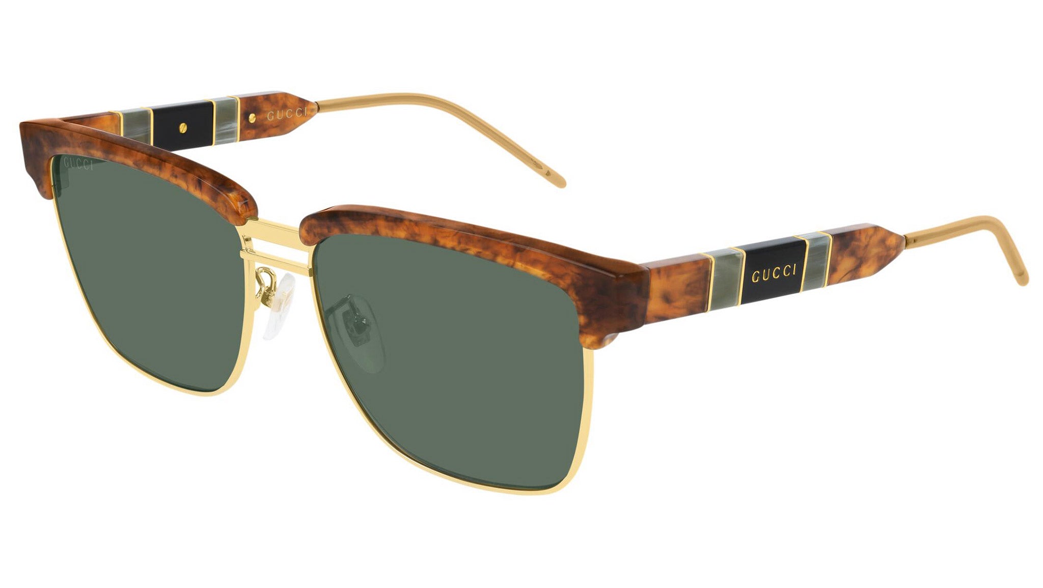 Occhiali da sole Gucci GG0603S 004 con montatura marrone tartaruga lucido e lenti color verde. Eclettici, moderni, romantici: i prodotti Gucci Eyewear rappresentano la punta di diamante dell'artigianalità italiana, in quanto a qualità e attenzione ai dettagli. Innovativo, prestigioso e audace, Gucci sta reinventando un approccio alla moda totalmente moderno. Nella sua nuova vision creativa, la Maison ha redifinito il concetto di lusso per il 21mo secolo.