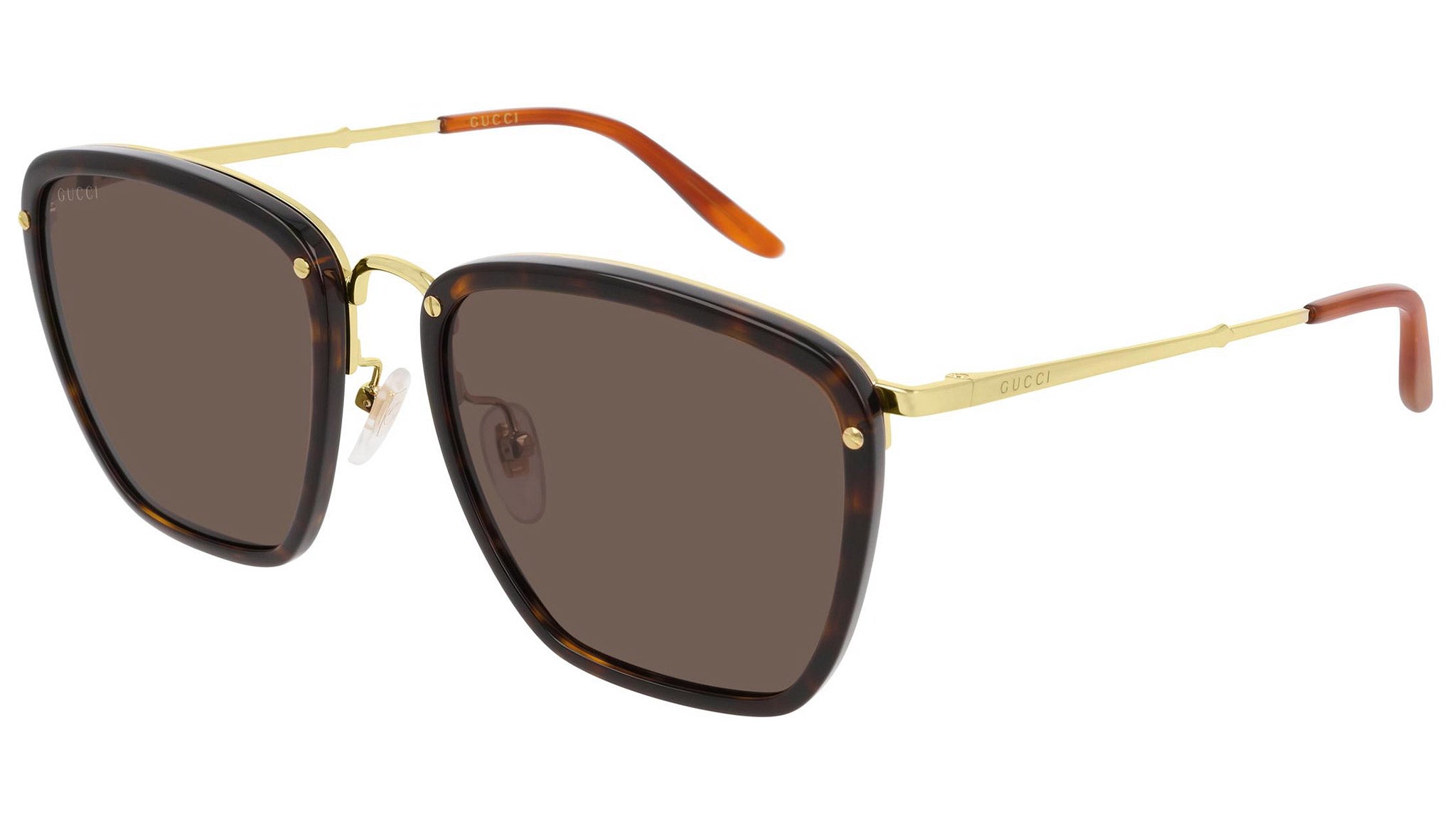 Occhiali da sole Gucci GG0673S 002 con montatura tartaruga scuro lucido e oro endura lucido e lenti color marrone. Eclettici, moderni, romantici: i prodotti Gucci Eyewear rappresentano la punta di diamante dell'artigianalità italiana, in quanto a qualità e attenzione ai dettagli. Innovativo, prestigioso e audace, Gucci sta reinventando un approccio alla moda totalmente moderno. Nella sua nuova vision creativa, la Maison ha redifinito il concetto di lusso per il 21mo secolo.