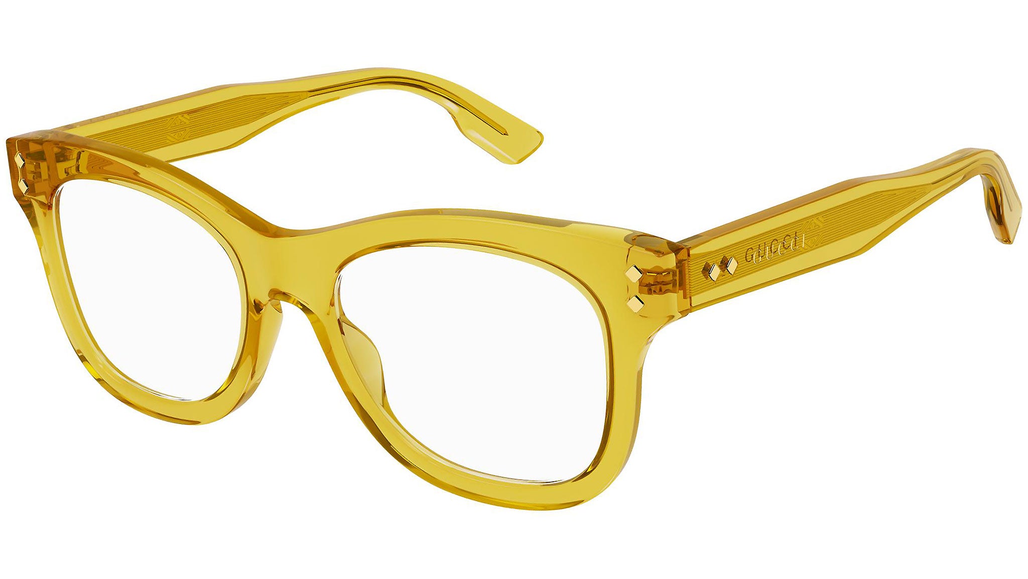 Occhiali da vista Gucci Logo modello 1086O, variante colore 002 senape trasparente lucido con astine color giallo. Montature eclettiche e modelli intramontabili: la linea sole Gucci rappresenta la punta di diamante dell'artigianalità italiana. Massima qualità e attenzione ai dettagli, per un nuovo concetto di lusso: Gucci sta reinventando lo stile, con un approccio totalmente moderno alla moda, nella sua nuova vision più creativa, eclettica e audace.