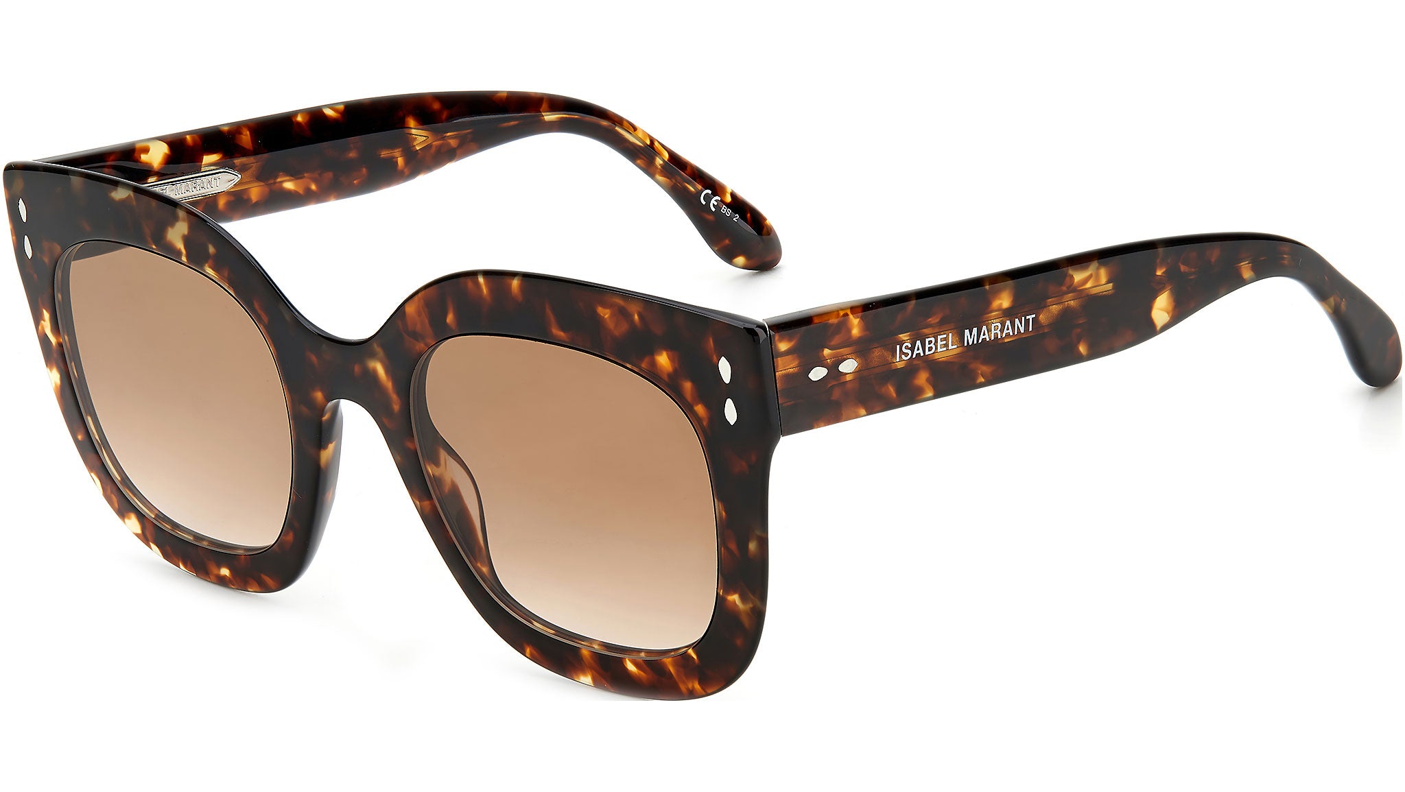 Bold and eye-catching, yet effortlessly lightweight: Isabel Marant’s New eyewear collection comprises a range of ultra-flat frames, spanning feminine colourways inspired by the brand's RTW line. Crafted from acetate with sleek metal temple cores and lasered logo hinges, these square sunglasses are finished with shaped temple tips and metal rivets in tribute to the brand’s signature leaf detail.