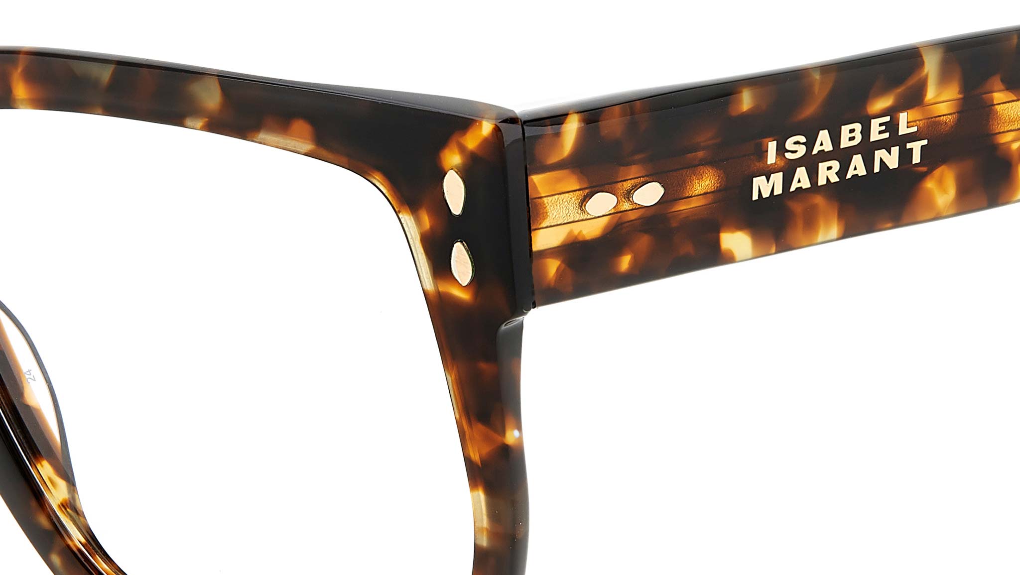 Occhiali da vista Isabel Marant modello IM 0128 codice colore 086 Havana con lenti demo. Trendy e attuali, gli occhiali della collezione The New di Isabel Marant vantano una costruzione in acetato particolarmente leggera, nonostante i volumi decisi delle aste che sono attentamente sagomate per il massimo comfort. I modelli richiamano l'iconico motivo a foglia del brand, interpretandolo sotto forma di terminali sagomati e rivetti in metallo con finitura argentata. Ispirata alla palette della collezione Ready To Wear di Isabel Marant, questa montatura da vista è completata dal nuovo logo del brand sull'asta sinistra e sulle cerniere.