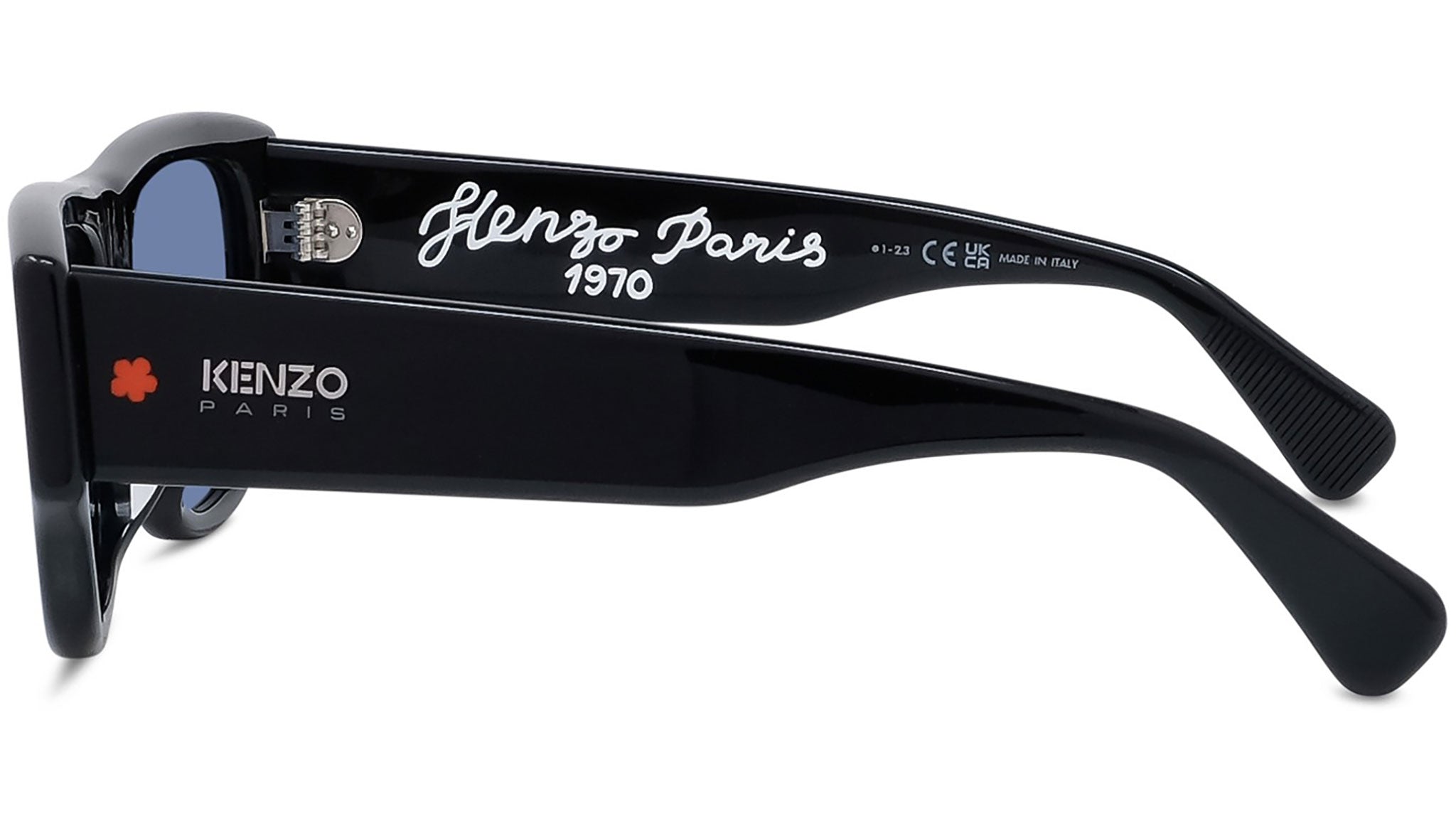 Occhiali da sole KENZO uomo linea 1970 modello KZ40185U 01V nero. Una nuova montatura audace, ispirata al vintage, arricchita con fiori boke rossi smaltati sulle aste, nuovo logo KENZO smaltato all'interno e terminali con grip speciale. Rivenditore autorizzato KENZO online. Gli occhiali vengono consegnati con custodia e accessori originali.