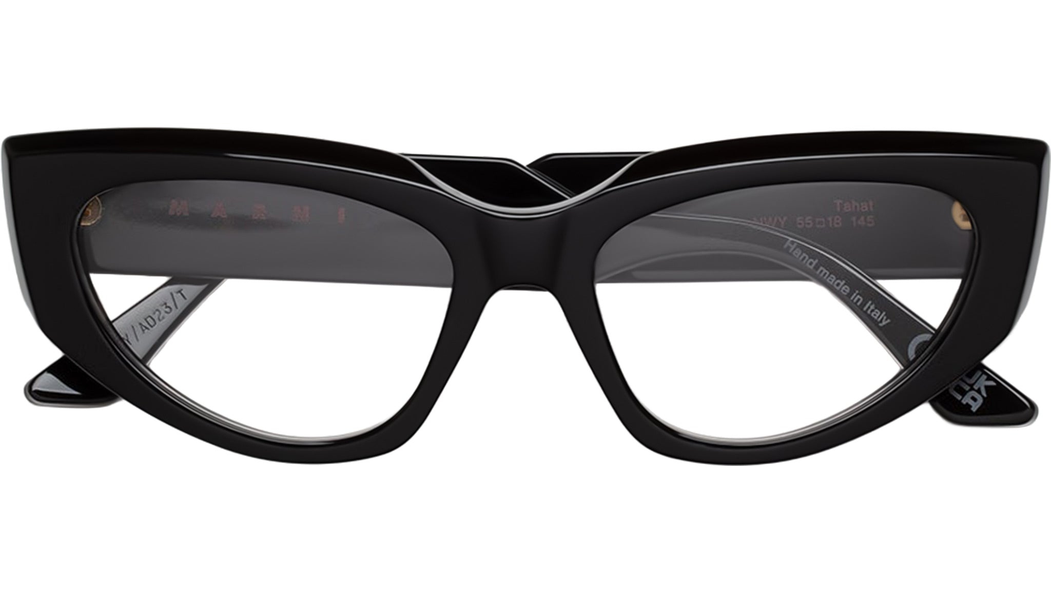 Montatura per occhiali da vista Marni Tahat Nero con montatura in acetato nero e lenti color lenti demo. Codice modello: NWY. Made in Italy. Rivenditore autorizzato Marni online. Gli occhiali vengono consegnati con custodia e accessori originali e sono coperti dalla garanzia ufficiale di 12 mesi del produttore.
