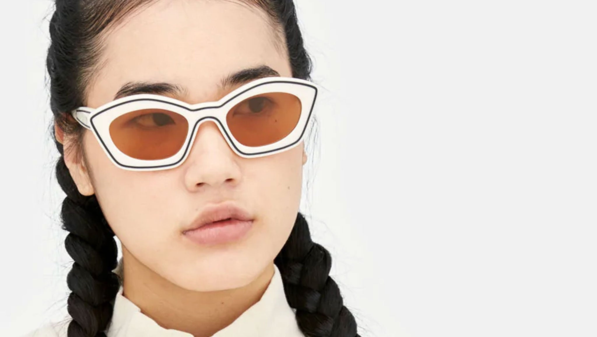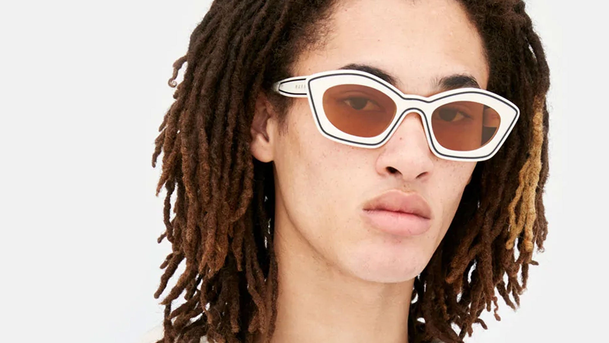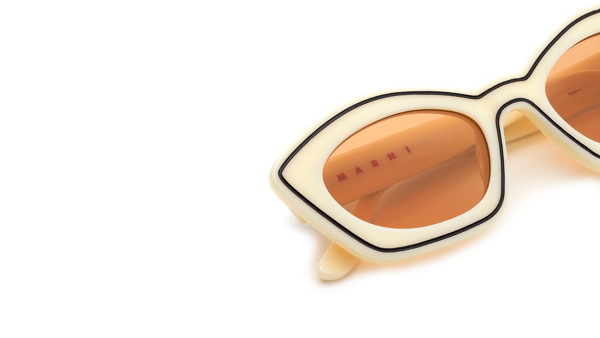 Kea Island is a genderless interpretation of classic cat-eye silhouettes. In line with Marni’s approach to design, characterized by unique geometries, deconstruction, and graphic detailing, these sunglasses are a hybrid piece that matches high-end construction with experimental style. The model features an angular design with a markedly curved rim on the top. The front has been laser engraved and filled with color to further evidence this iconic shape. This version comes with a light-tinted acetate, contrasting black engraving, and brown-tinted lenses.