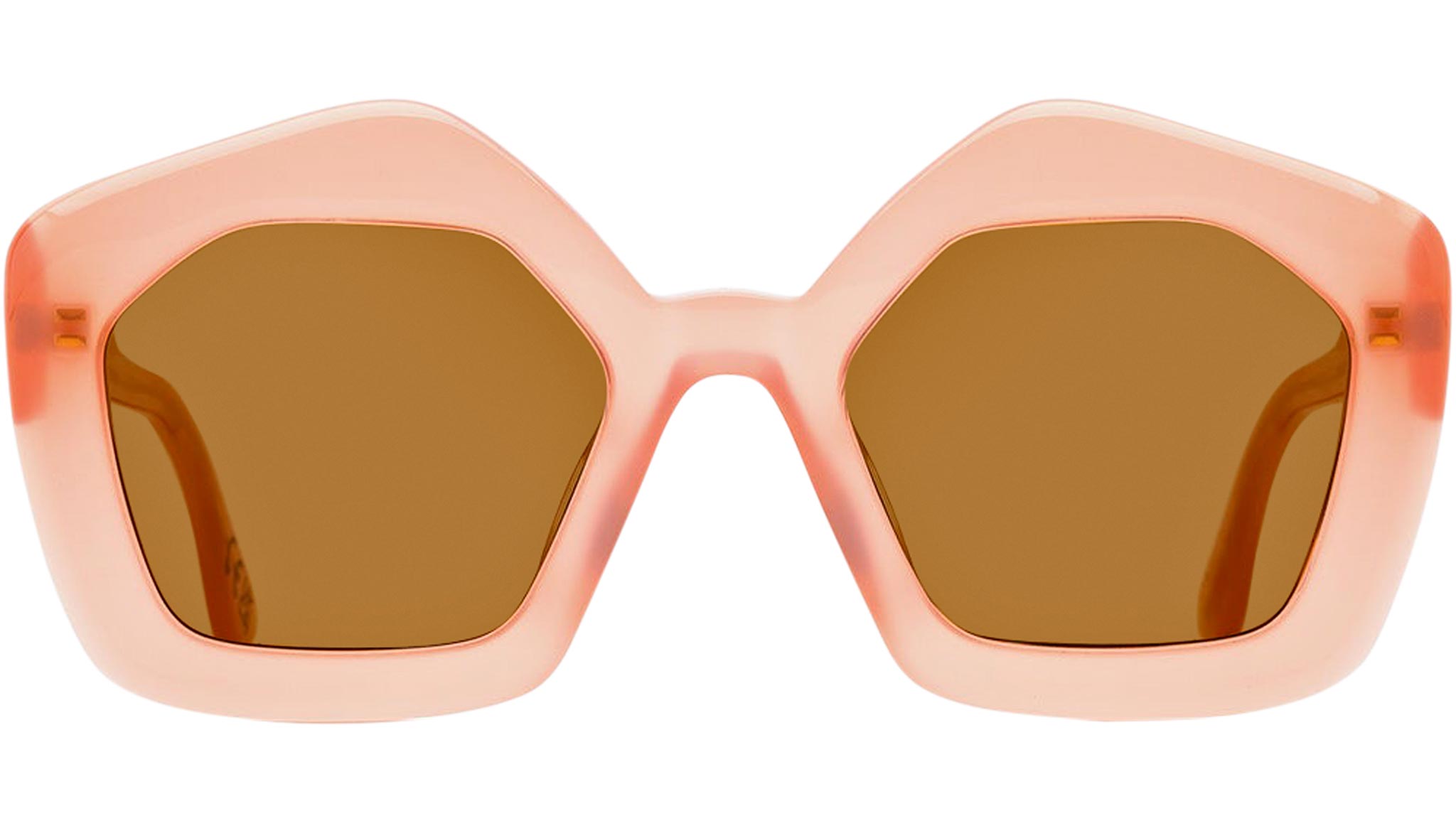 Designed exclusively for Marni, Laughing Waters captures the iconic Italian brand’s quirky, eclectic approach to style. This thick acetate silhouette is characterised by oversized lenses and sculpted rims. The model’s iconic pentagonal lens shape is a reinterpretation of Marni’s heritage silhouette. This version comes with a pink tinted acetate and brown lenses. Sizes: R Lens Width: 51 mm. Frame Front: Frame Side: 145 mm. Product Code Size R: 5H6