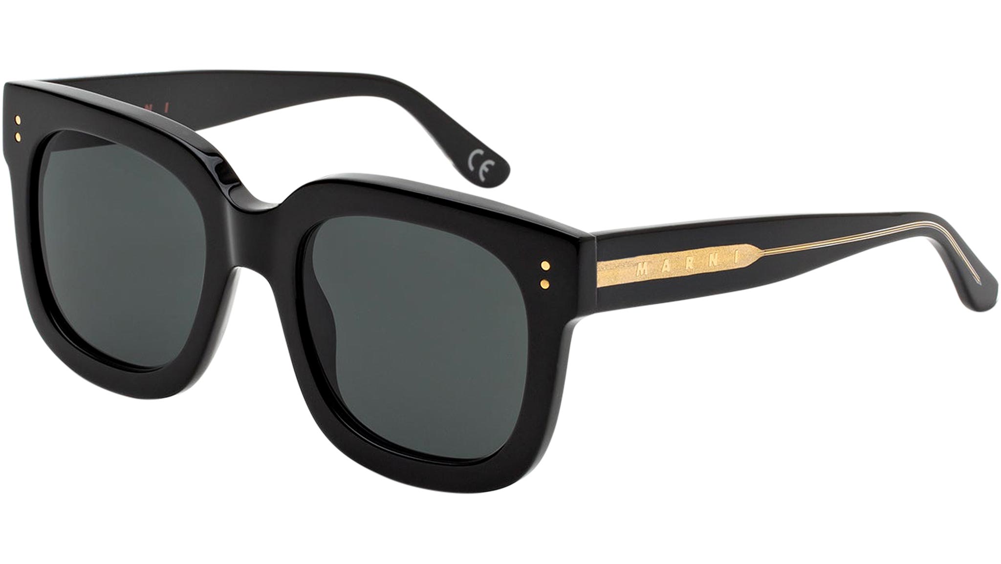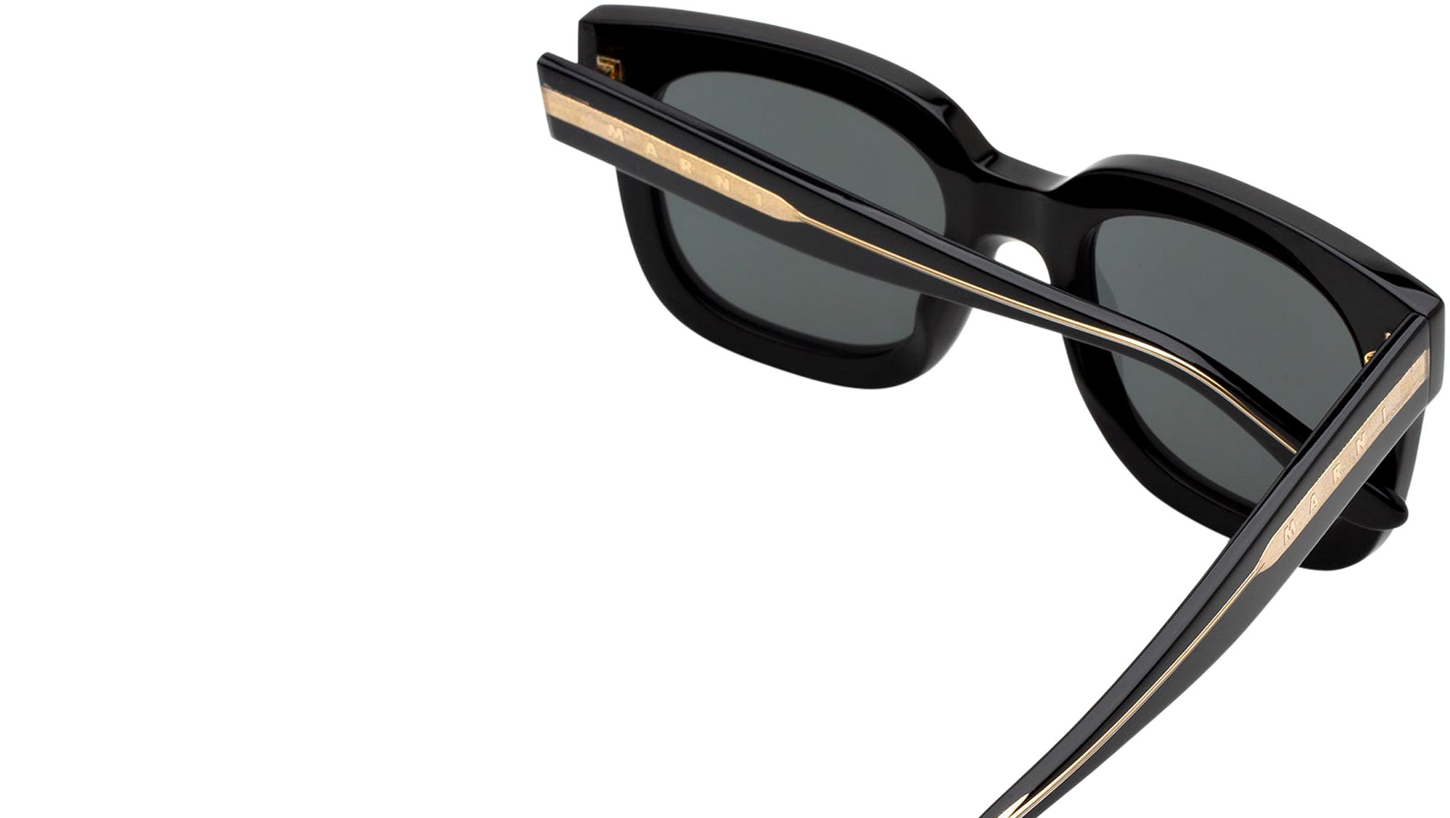 Designed exclusively for Marni, Li River is an iconic oversized silhouette crafted from quality Italian acetate. The shape is characterised by bold squared lenses with geometric temple tips. The front features an engraved line marking the shape’s thick rims. This version features black acetate with white engraving and black lenses. Sizes: R / R Lens Width: 54 mm. Frame Front: Frame Side: 145 mm. Product Code Size R: 4DM Product Code Size R: 7P5
