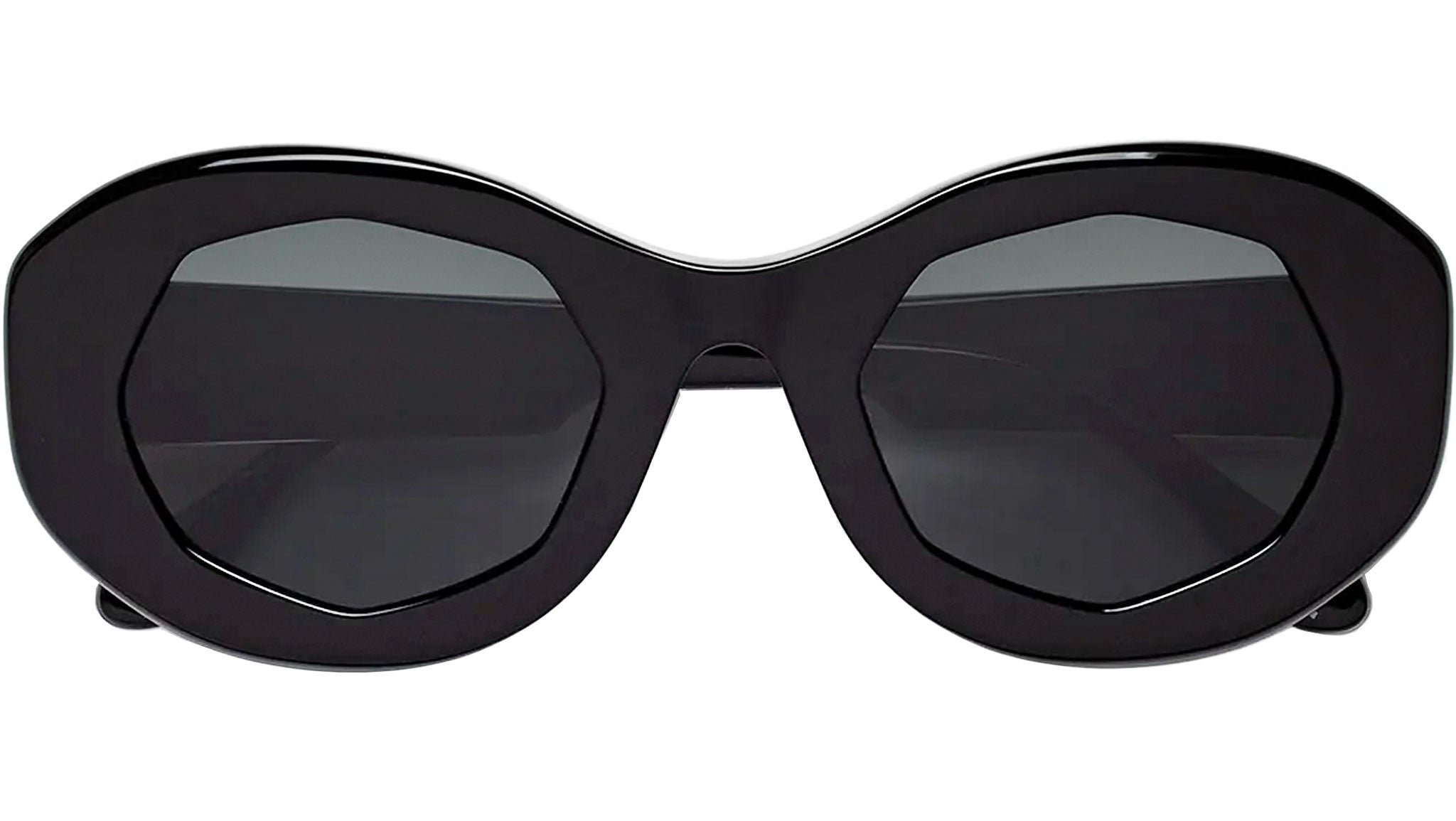 Mount Bromo reinterprets classic oversized frames for a new era. Cutting-edge stylistic references define Mount Bromo’s identity, at the intersection of vintage glamour and grunge chunky shapes. Exceptional craftsmanship elevates Mount Bromo’s design to an artful piece, with rings around the lenses encased within shiny acetate construction. This version features a black acetate and black lenses.