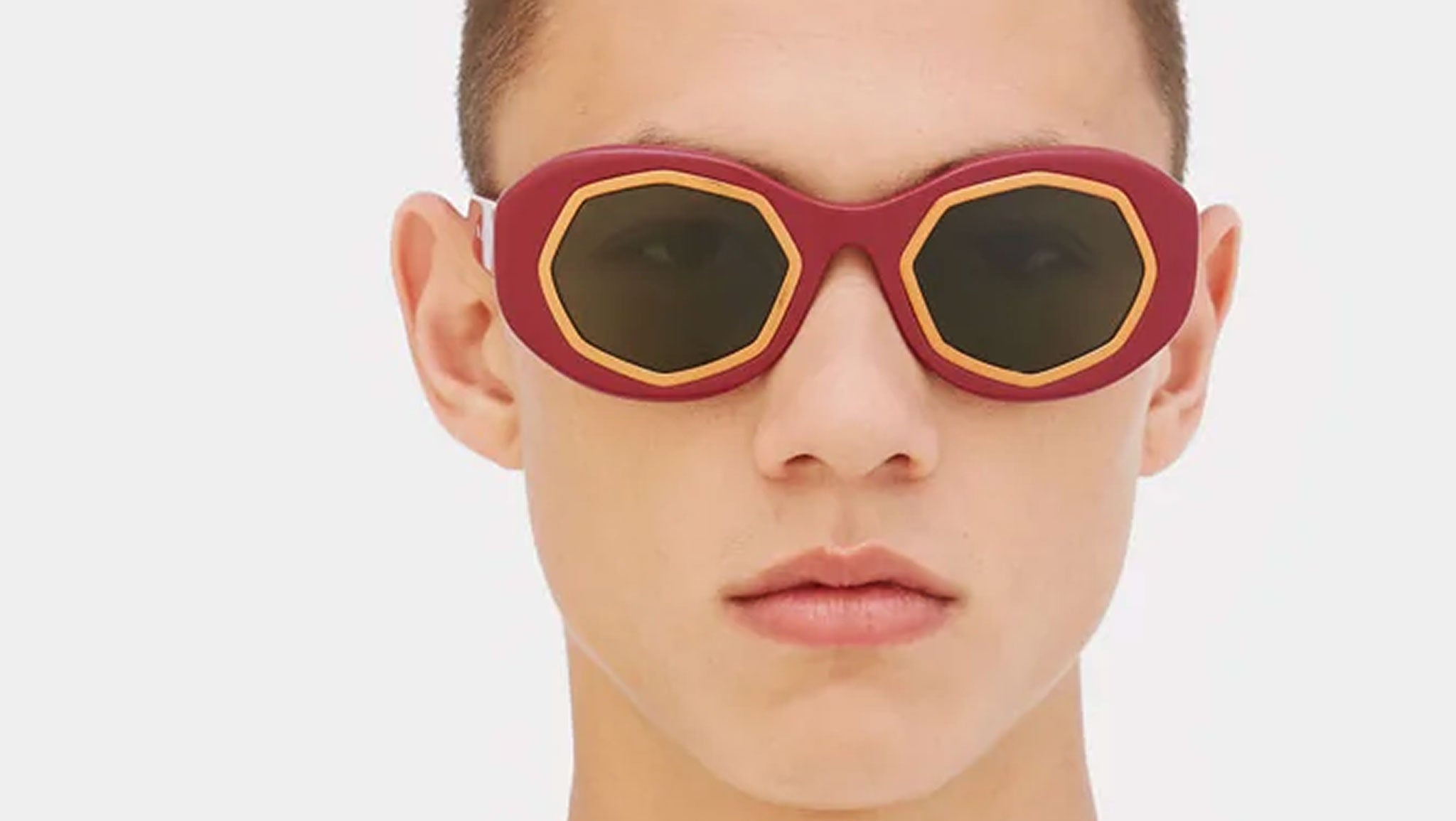 Mount Bromo reinterprets classic oversized frames for a new era. Cutting-edge stylistic references define Mount Bromo’s identity, at the intersection of vintage glamour and grunge chunky shapes. Exceptional craftsmanship elevates Mount Bromo’s design to an artful piece, with rings around the lenses encased within shiny acetate construction. This version features a dark red acetate with gold detailing and grey-tinted lenses.