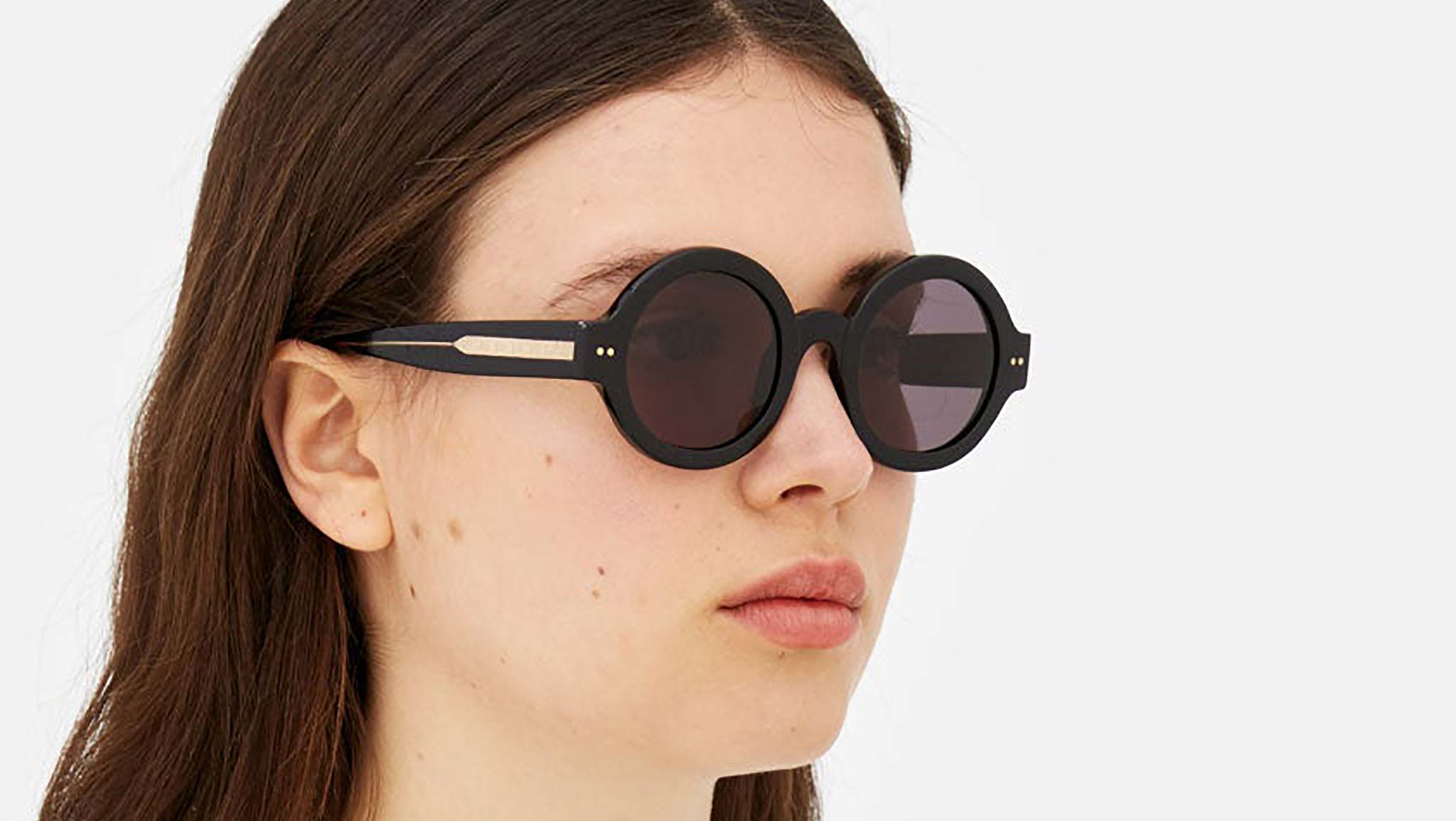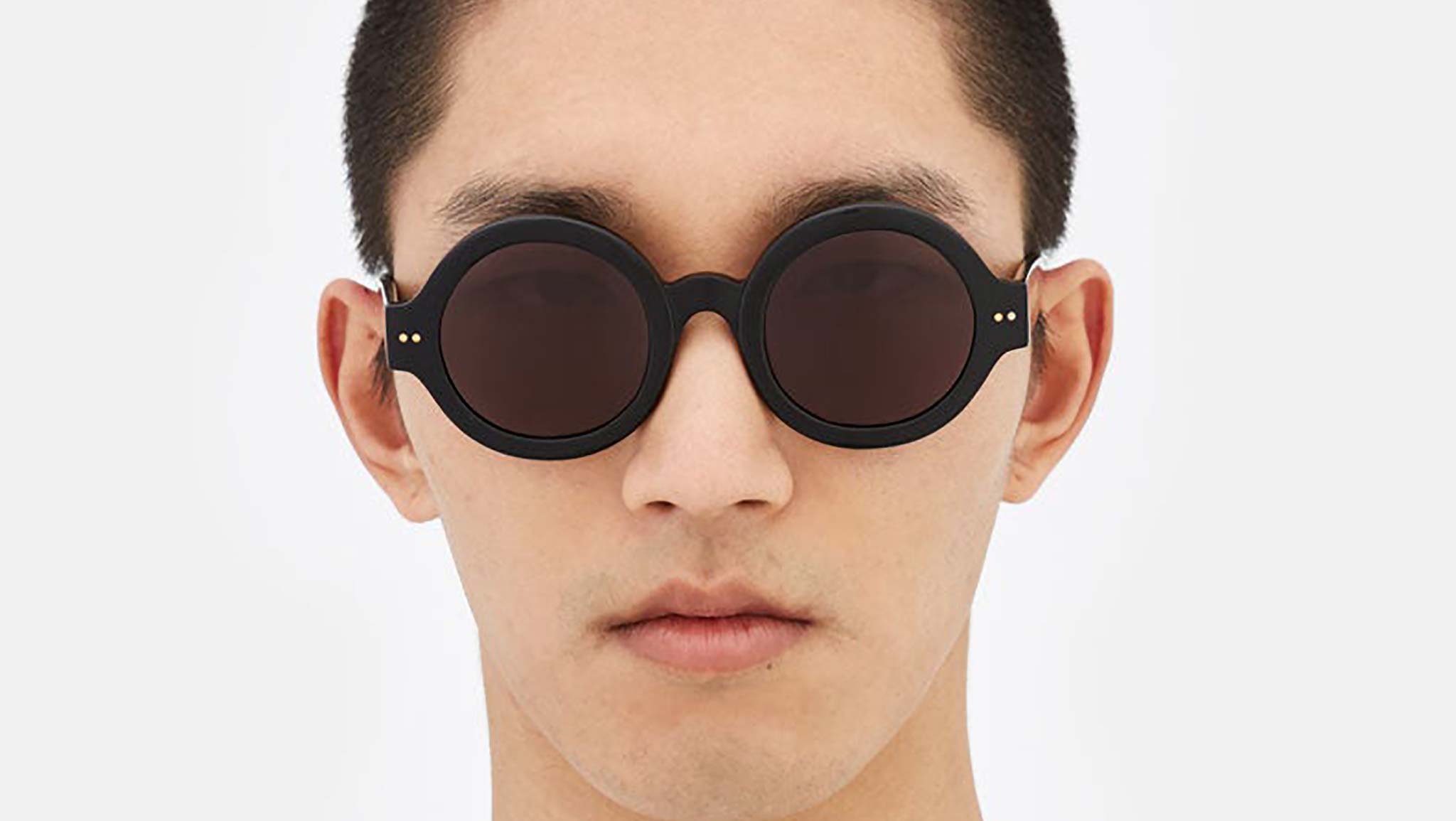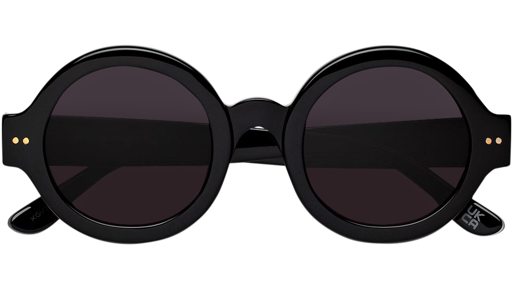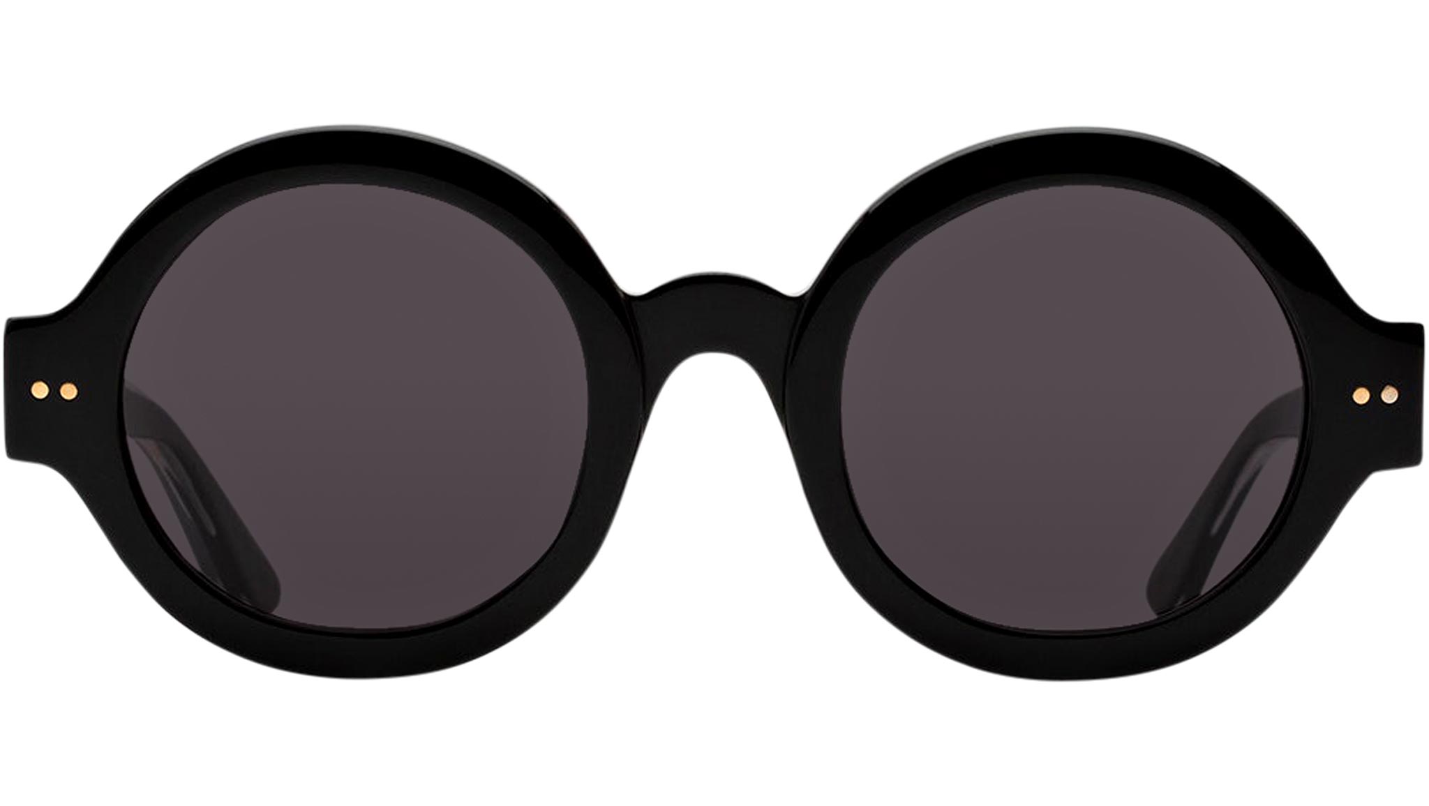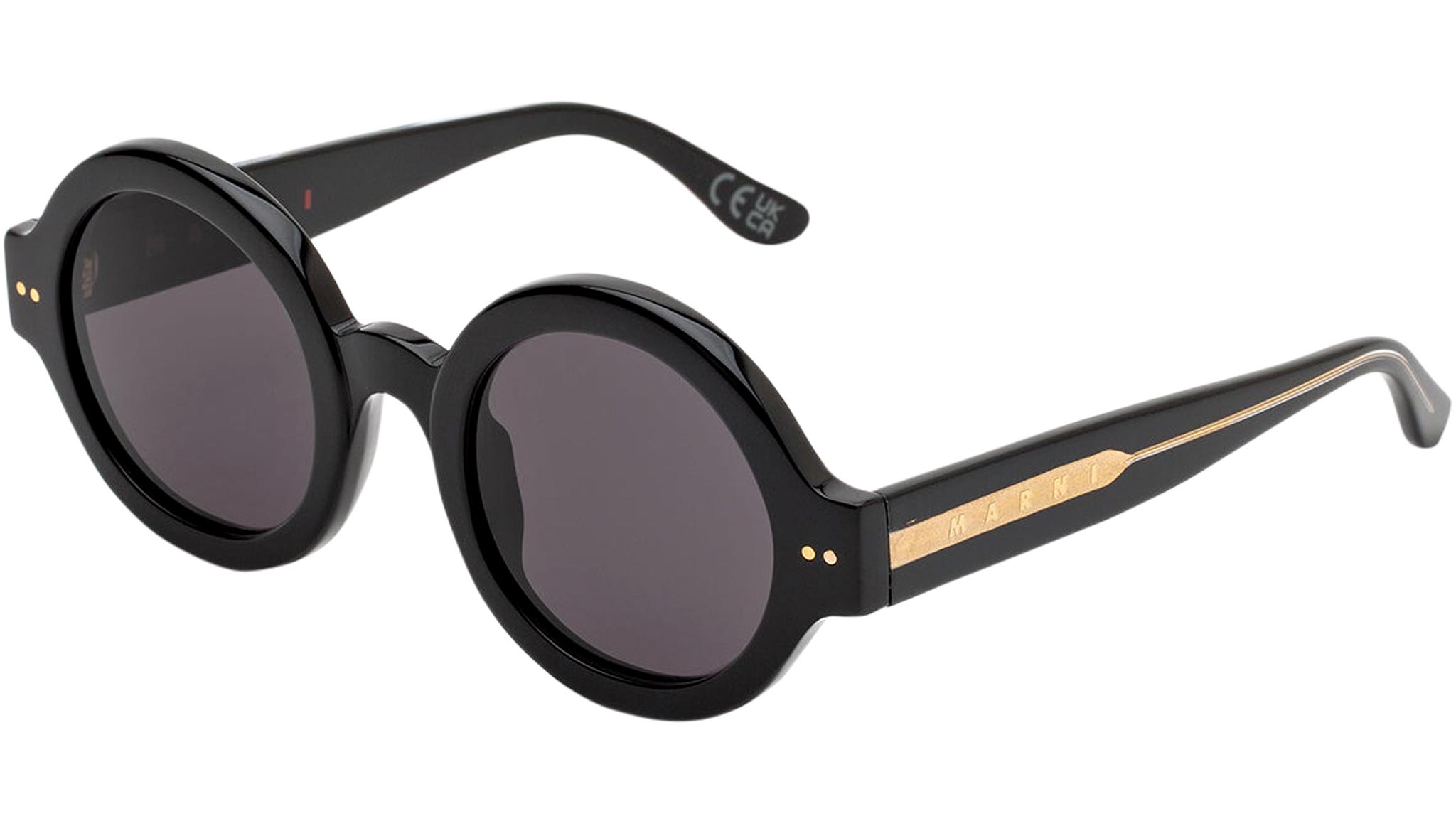 Designed exclusively for Marni, Nakagin Tower is a playful silhouette that praises the historical round shape. The model features rounded lenses encased within thick rims with a curved nose-bridge and sturdy temples. A modernist icon revisited for a fresher, more contemporary aesthetics. This version is available in black acetate with matching lenses. Sizes: R Lens Width: 50 mm. Frame Front: Frame Side: 145 mm. Product Code Size R: KGI
