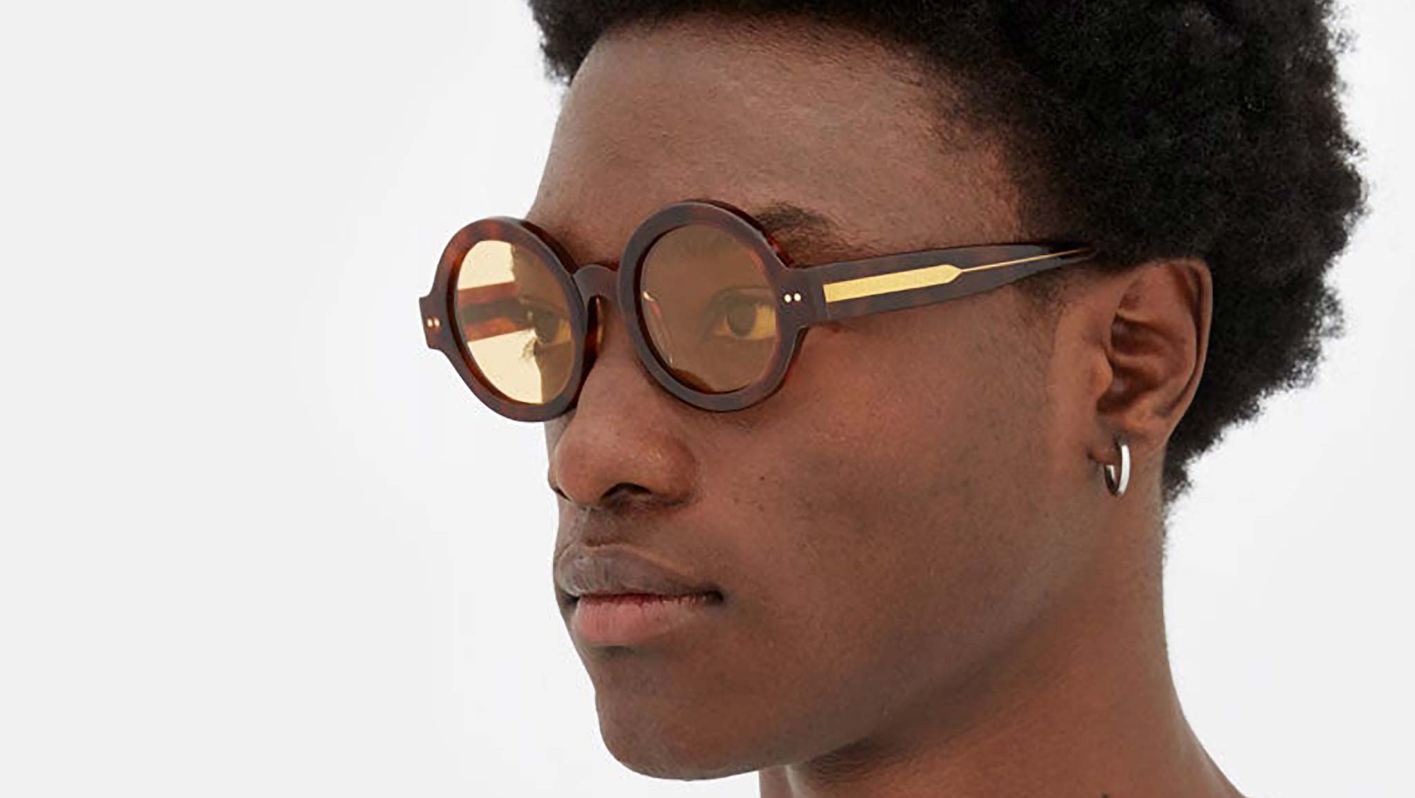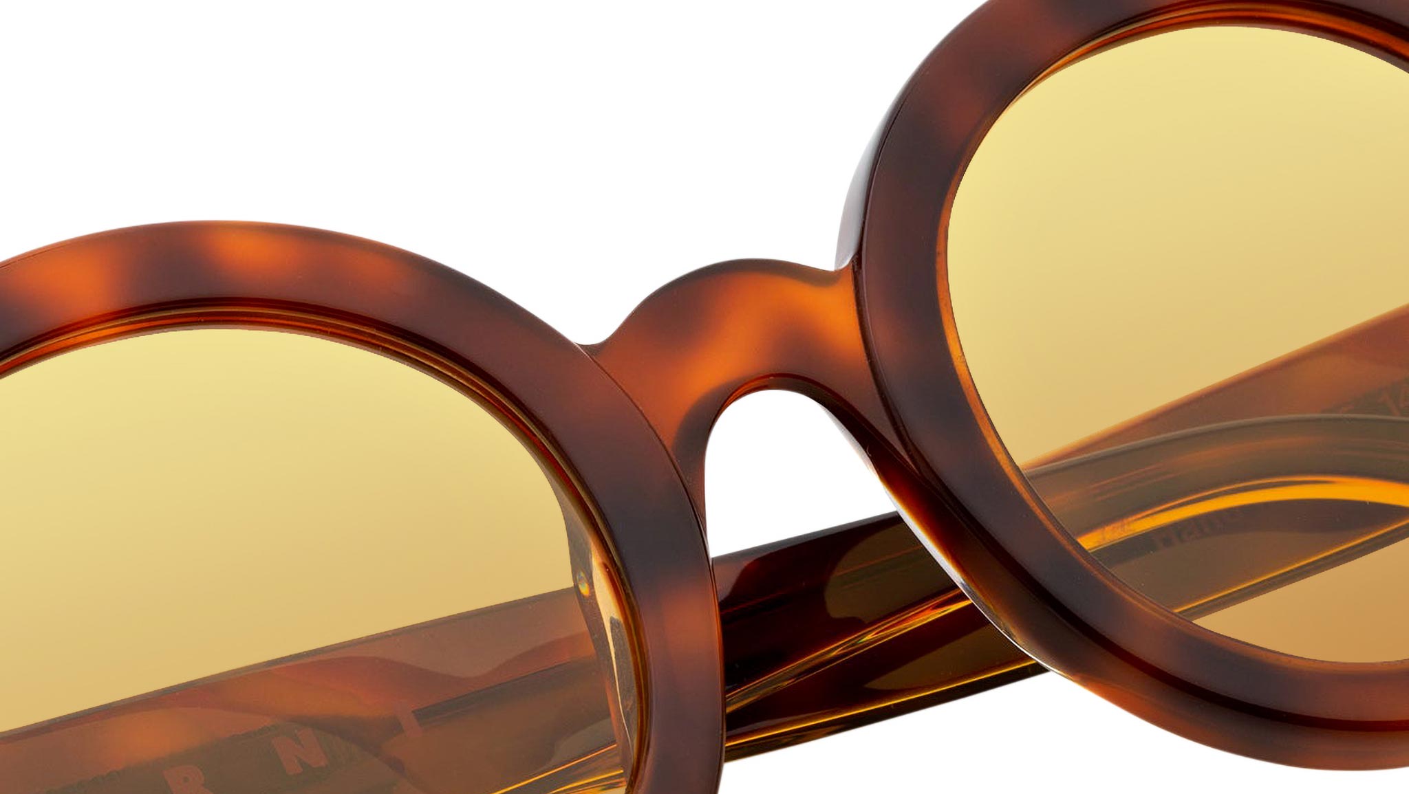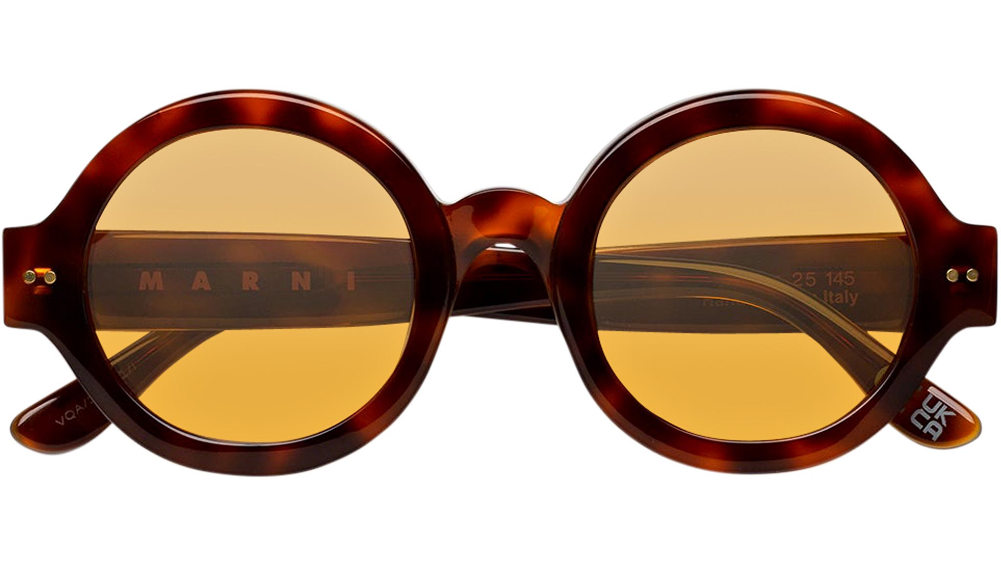 Designed exclusively for Marni, Nakagin Tower is a playful silhouette that praises the historical round shape. The model features rounded lenses encased within thick rims with a curved nose-bridge and sturdy temples. A modernist icon revisited for a fresher, more contemporary aesthetics. This version is available in a warm Havana acetate with mustard tinted lenses. Sizes: R Lens Width: 50 mm. Frame Front: Frame Side: 145 mm. Product Code Size R: VQA
