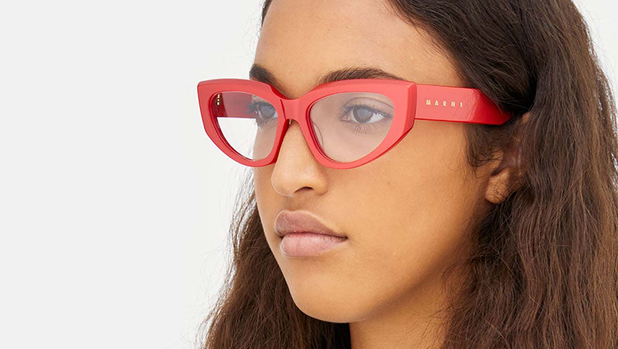 Designed exclusively for Marni, Tahat is a geometric interpretation of classic cat-eye frames. The model features a sharp angular profile, with thick rims around the nose bridge and temples. The rims have been cut in profile, thus emphasizing the unique geometry of the frame. Thick temples complete this sharp everyday silhouette. This version of Tahat comes in a metallic red acetate. Sizes: R Lens Width: 55 mm. Frame Front: Frame Side: 145 mm. Product Code Size R: KHH