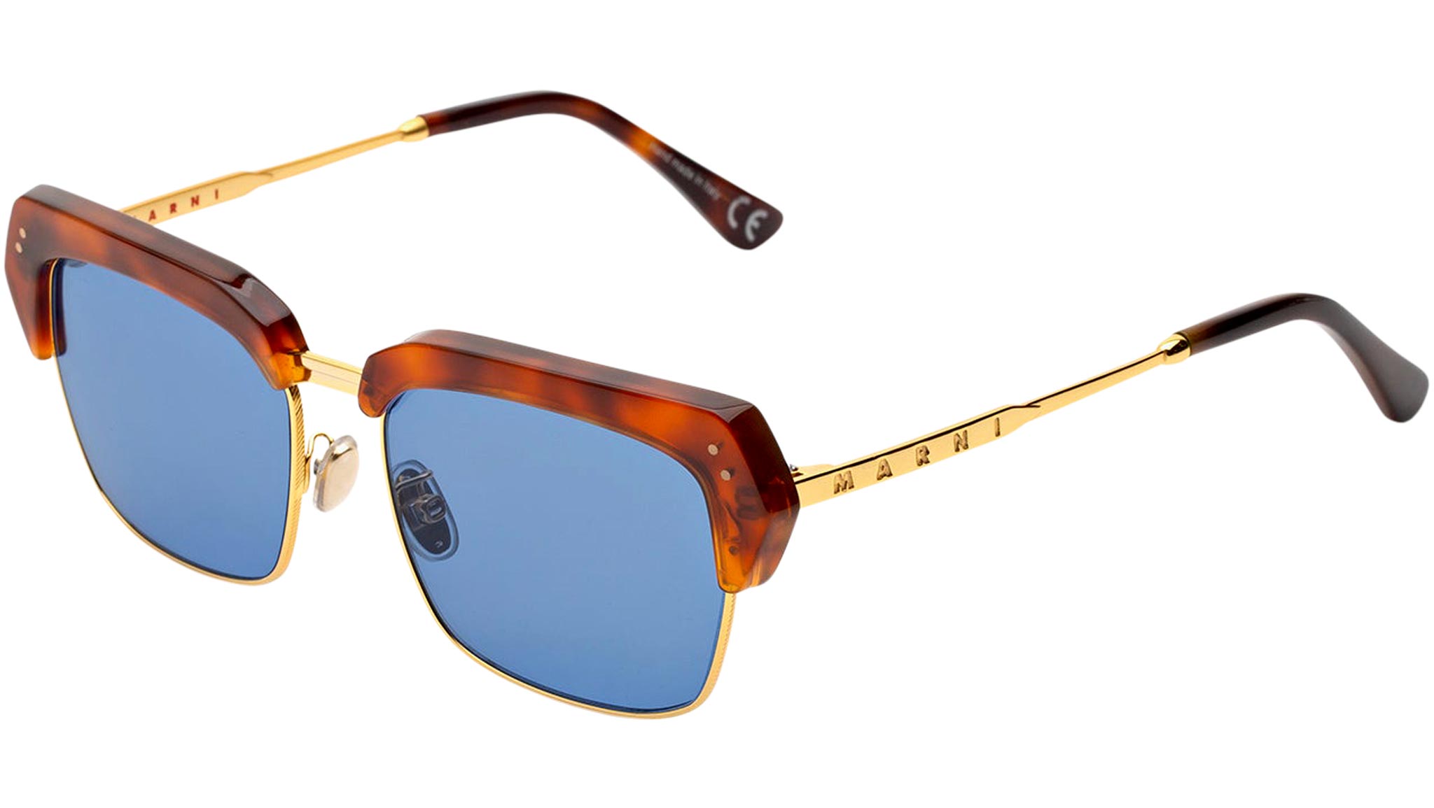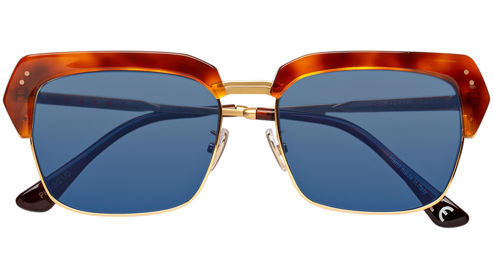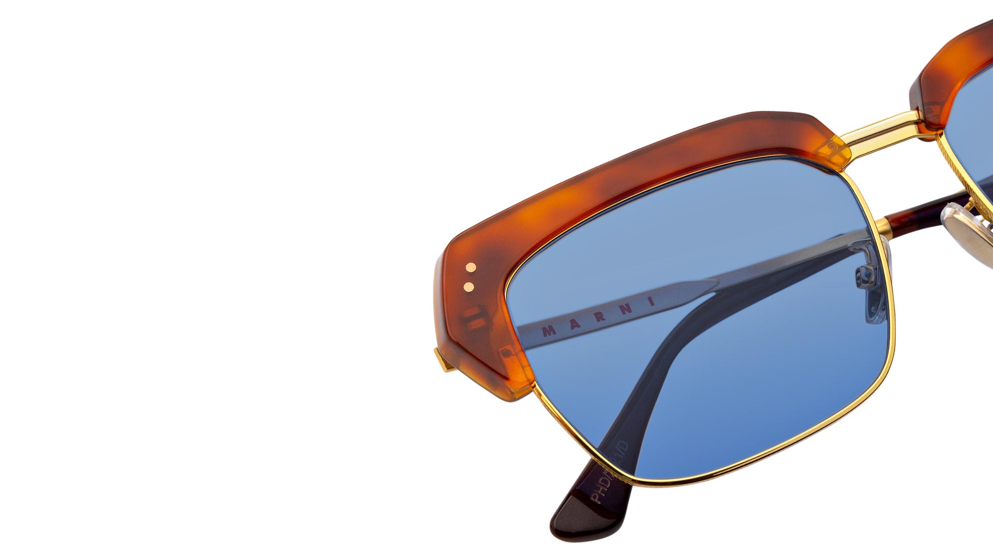 Designed exclusively for Marni, Three Gorges is a metal and acetate frame conceived as a bold contemporary interpretation of classic 1950s-style models. The shape features a thick acetate brow mounted on top of sleek metal rims, with a sturdy nose-bridge and temples. This version features a vibrant Havana acetate matched with a bronze metal finish and blue tinted lenses. Sizes: R Lens Width: 55 mm. Frame Front: Frame Side: 145 mm. Product Code Size R: PHD