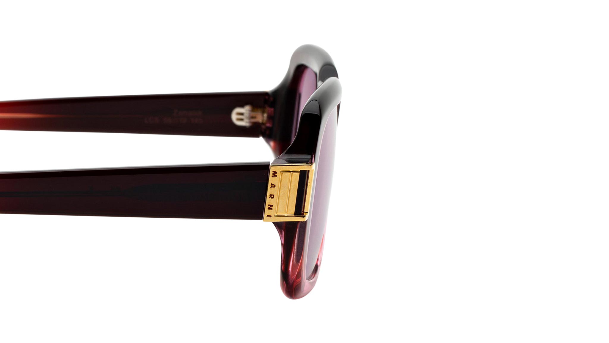 Designed exclusively for Marni, Zamalek is a stubbornly oversized silhouette inspired by the groovy 1970s aesthetics, with a touch of bold and experimental streetwear culture. The model features large squared lenses with a sturdy nose-bridge and thick acetate rims. Zamalek is equipped with a custom-designed metal décor on the temples that elevates this unique contemporary silhouette. This version comes in a faded burgundy acetate with playful lilac lens. Sizes: R Lens Width: 54 mm. Frame Front: Frame Side: 145 mm. Product Code Size R: LCS