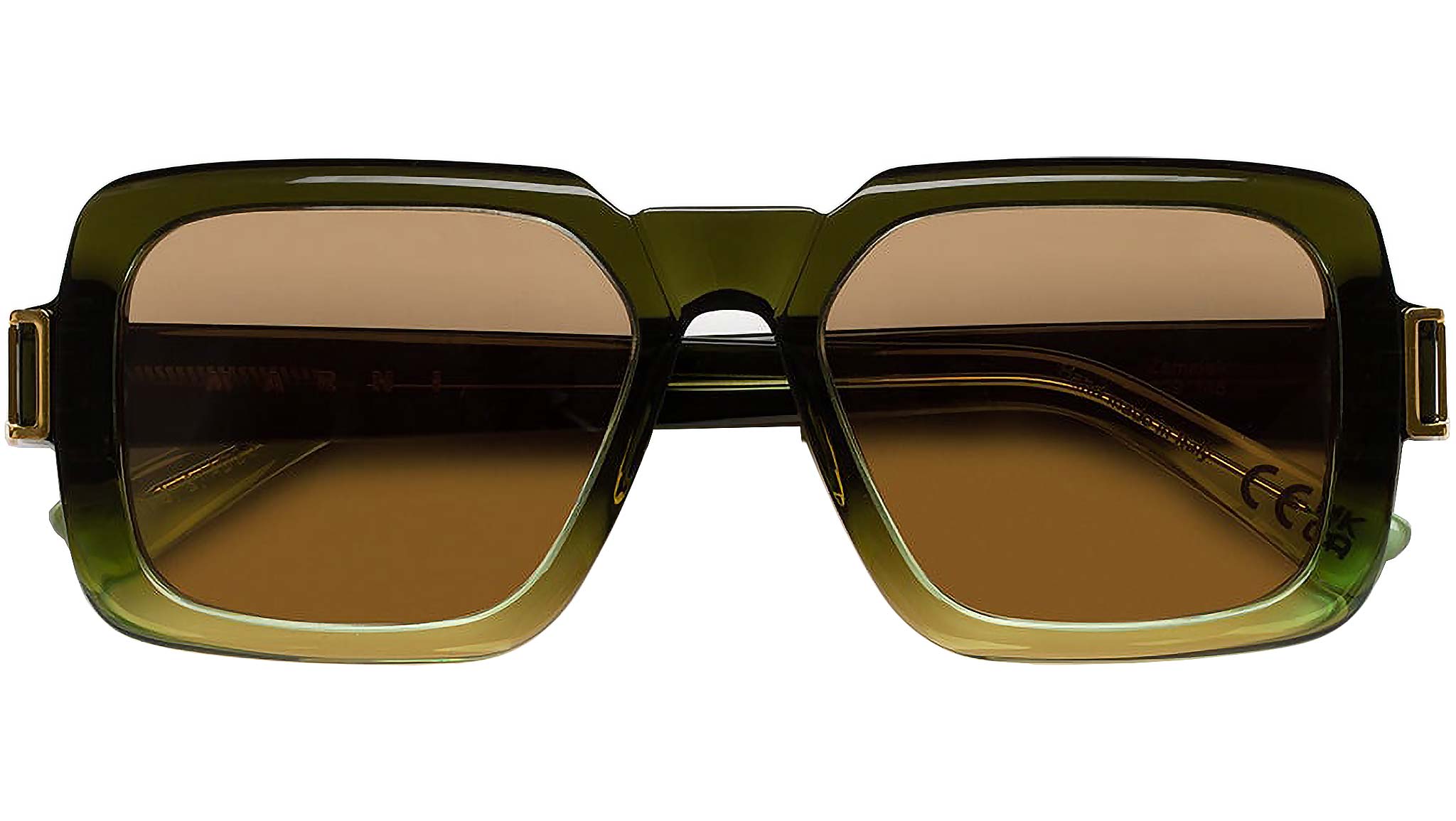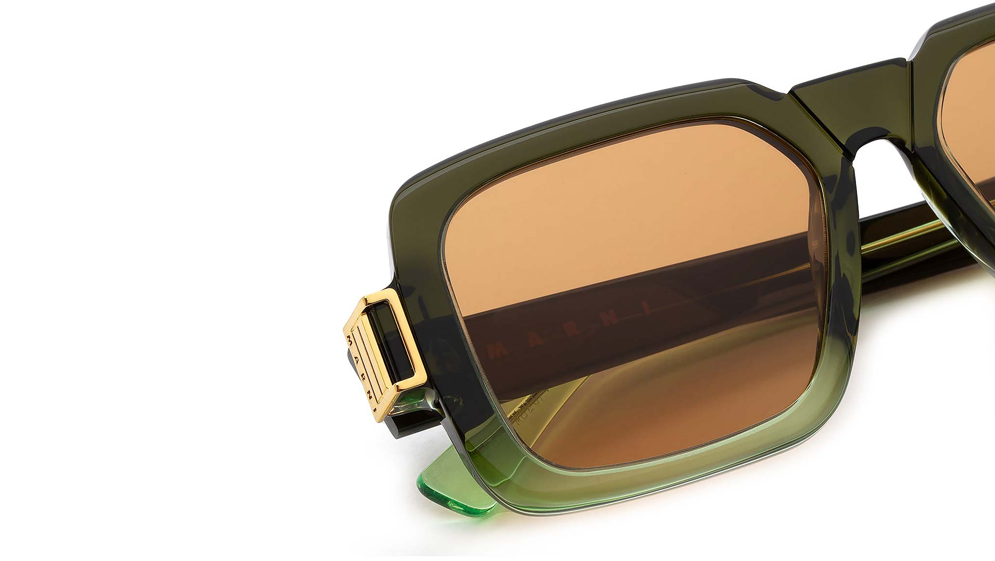 Designed exclusively for Marni, Zamalek is a stubbornly oversized silhouette inspired by the groovy 1970s aesthetics, with a touch of bold and experimental streetwear culture. The model features large squared lenses with a sturdy nose-bridge and thick acetate rims. Zamalek is equipped with a custom-designed metal décor on the temples that elevates this unique contemporary silhouette. This version comes in a fading grey and green acetate with sophisticated brown lenses. Sizes: R Lens Width: 54 mm. Frame Front: Frame Side: 145 mm. Product Code Size R: 1W8