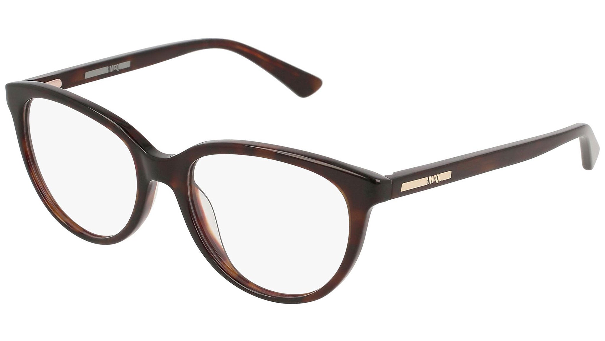 McQ optical collection model MQ0115OP 002 featuring shiny classic havana frame and havana temple. McQ design is a play on everyday styles. The innovative cut lenses are applied into edgy shapes for a unique look. This style is the preferred choice for making a statement. Buy your frames online and take them to your local optician to fit prescription lenses.